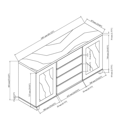 Stacey - Buffet With Storage Drawers And Marble Detailing - Black / Marble