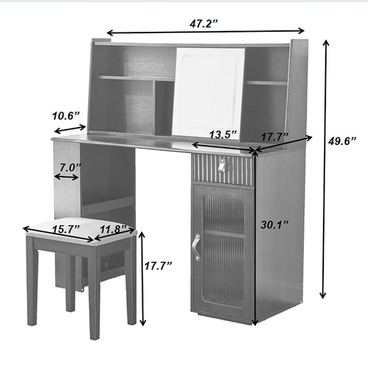 Modern Makeup Vanity Set With Power Outlet, Hair Dryer Holder, And Adjustable Lighting