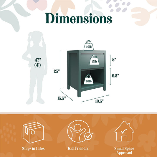 Nightstand With Drawer And Open Shelf, Scalloped Edge Bedside Table