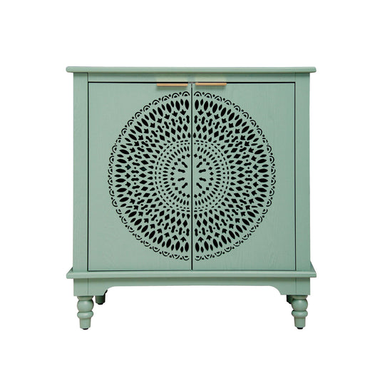 Accent Cabinet With Carved Floral Panels, Sideboard With Drawer And Double Doors - Antique Brown / White