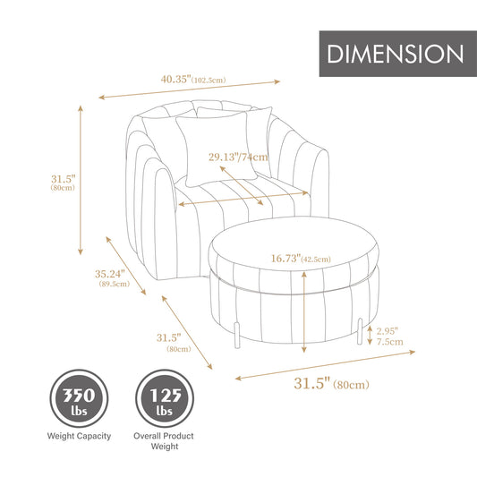 Oversized Velvet Swivel Barrel Accent Chair And Ottoman Set With Storage