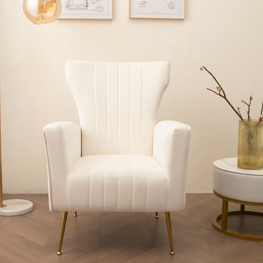 Velvet Wingback Accent Chair With Legs, Upholstered Single Sofa - White