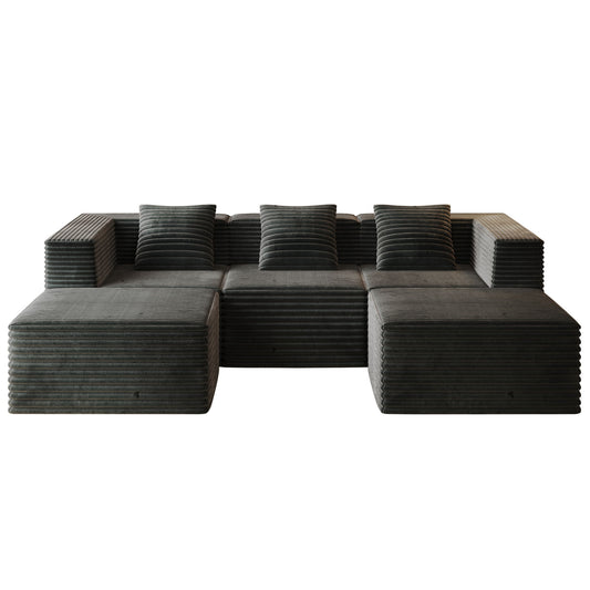 Modern Corduroy Deep Seat Sectional Sofa With Ottoman