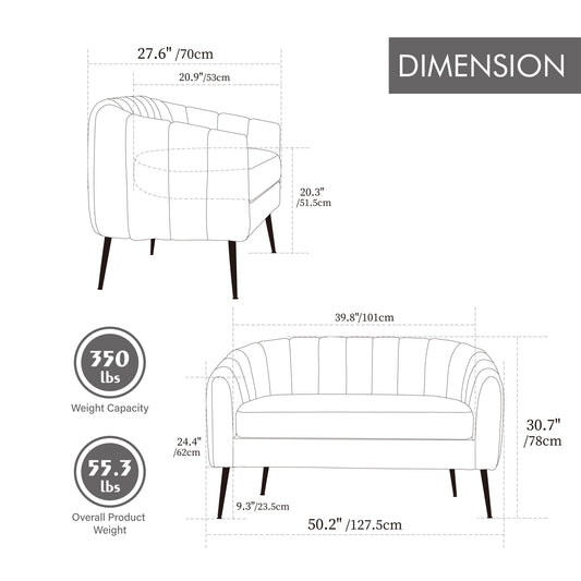 Modern Fabric Loveseat With Sloped Armrests For Living Room - Beige