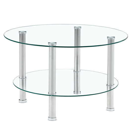 Contemporary Artistic Double Layer Coffee Table,Tempered Glass Top