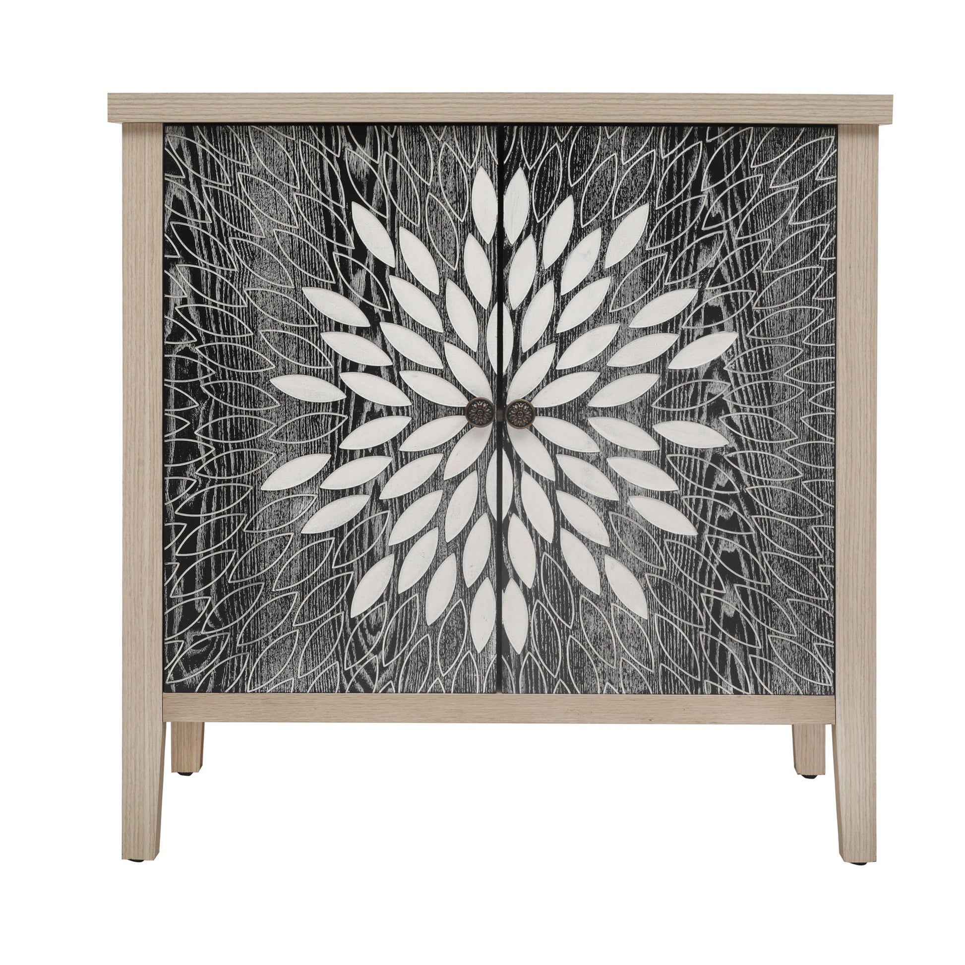 2 Door Carved Storage Cabinet With Adjustable Shelf, Accent Furniture For Living Room, Hallway, Kitchen - Black / Natural
