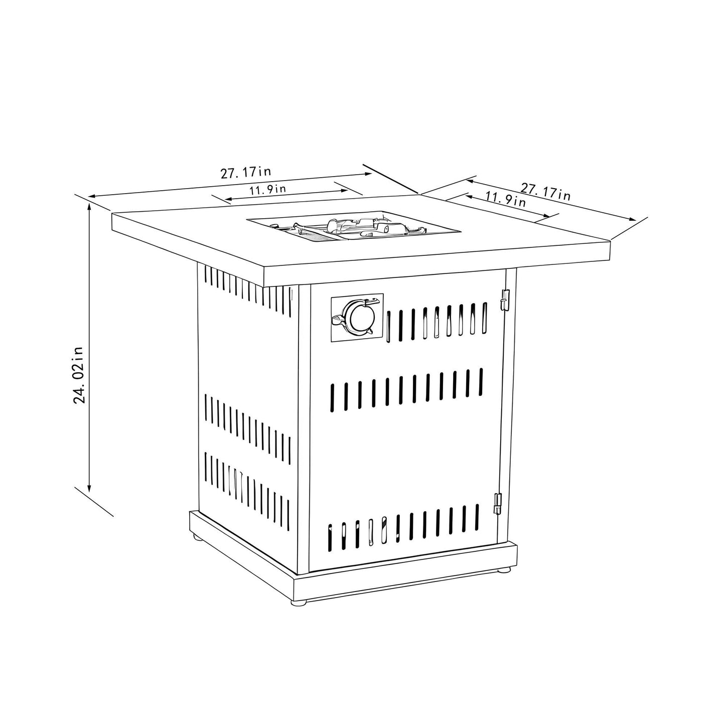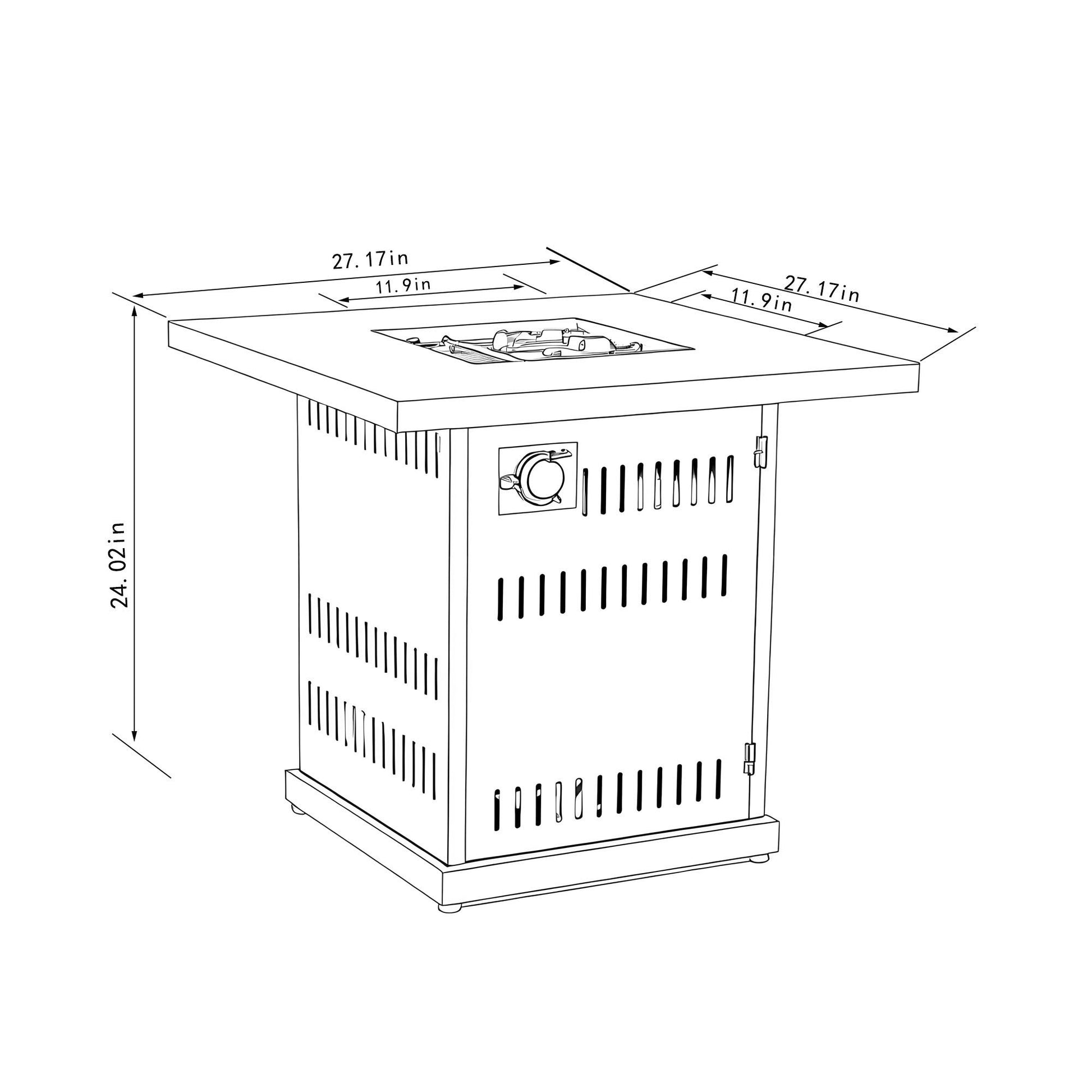 28" Propane Gas Fire Pit Table, 50000 Btu Square Steel Fire Pit For Outside Patio Deck Garden Courtyard - Brown
