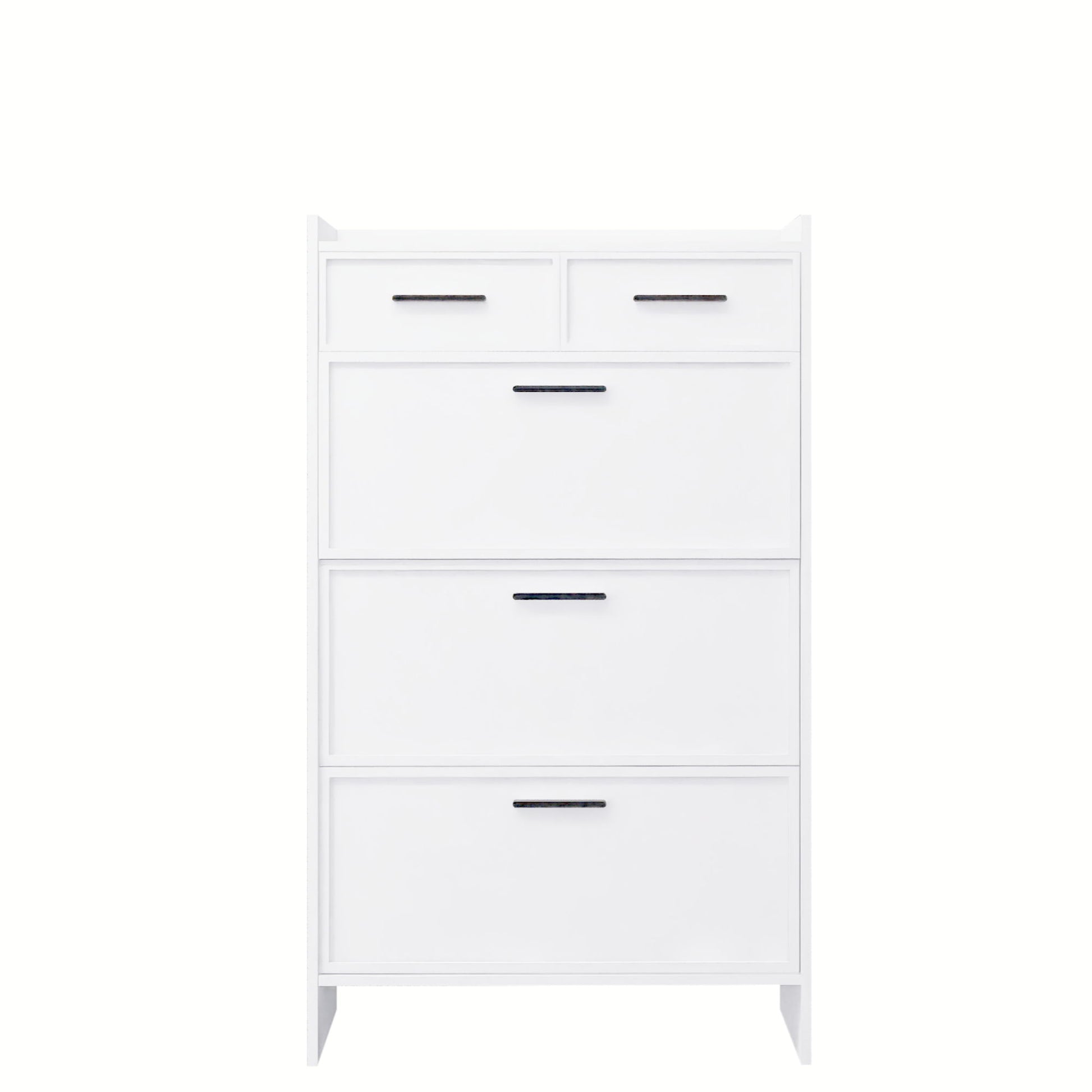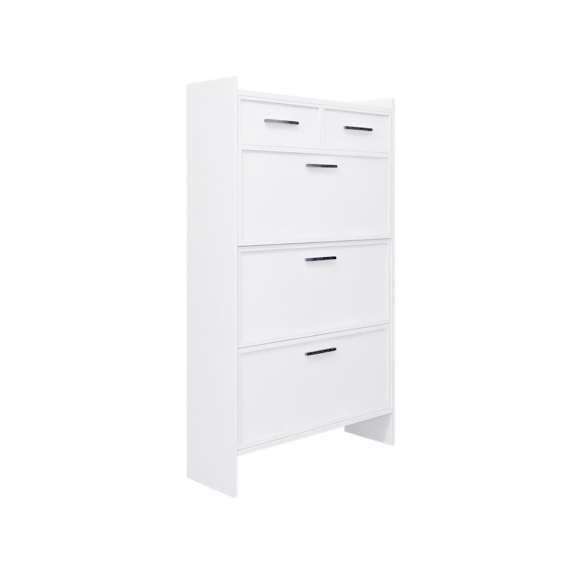 Shaker Shape Door Shoe Rack 3 Doors Shoe Cabinet With 2 Drawers With Open Space For Shoes - Matte White