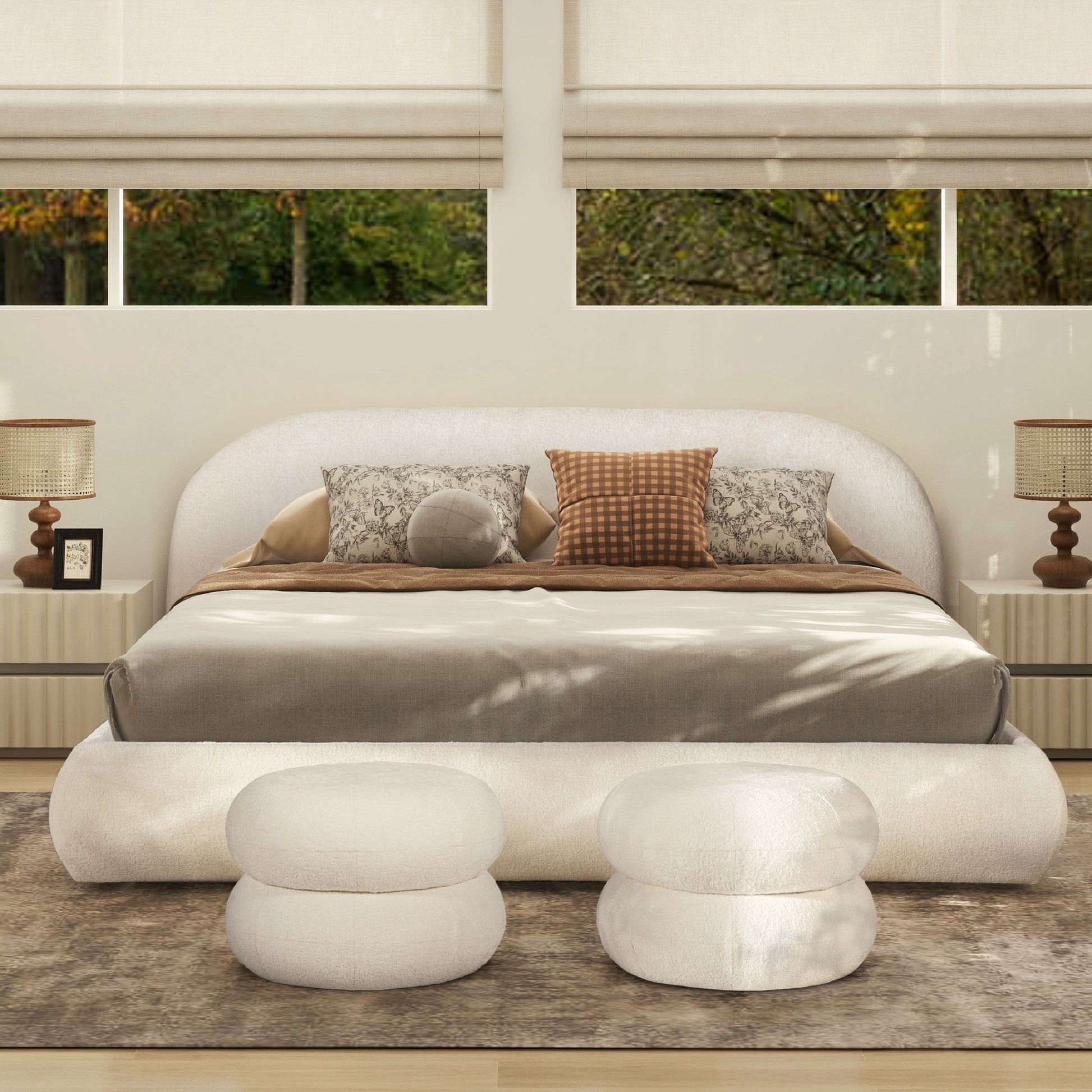 Archie Puffy Grounded - Queen Upholstered Platform Bed - Almond White