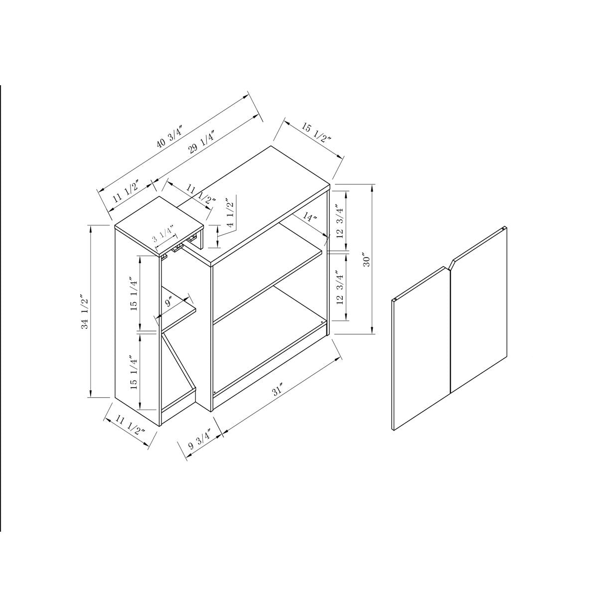 40.75"W x 15.5"D x 34.5"H - 75.0 lb