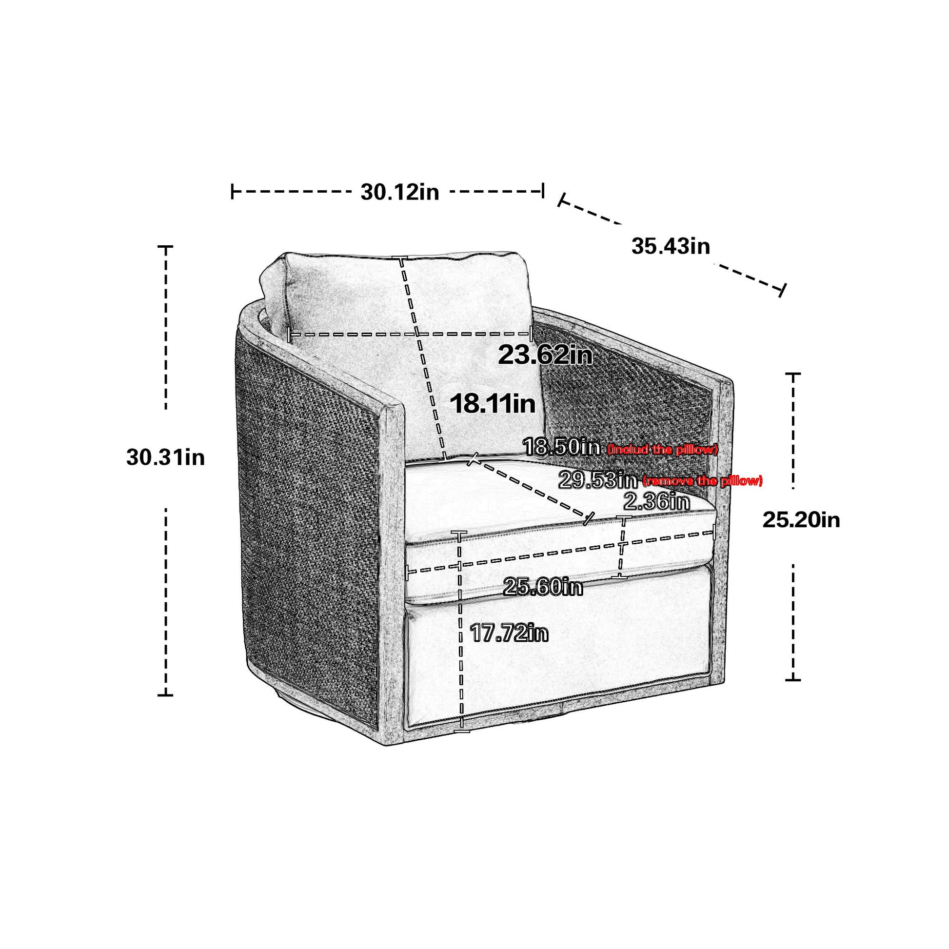Barrel, Comfy Round Accent Sofa Chair With 360 Degree Swivel, Leisure Arm
