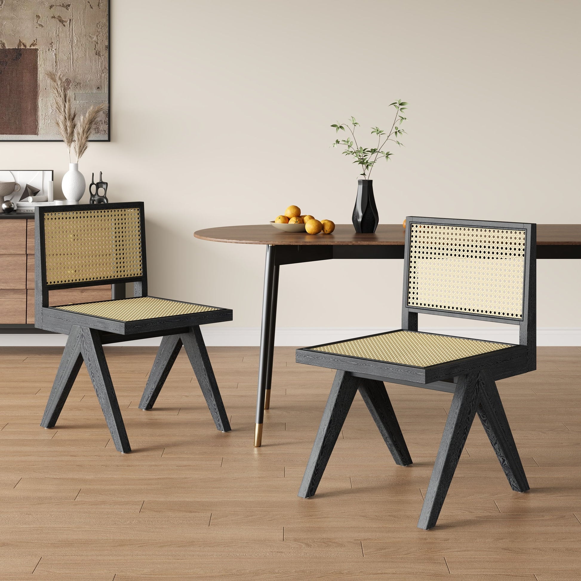 Chandigarh Dining Room Chairs With Natural Rattan (Set of 2)