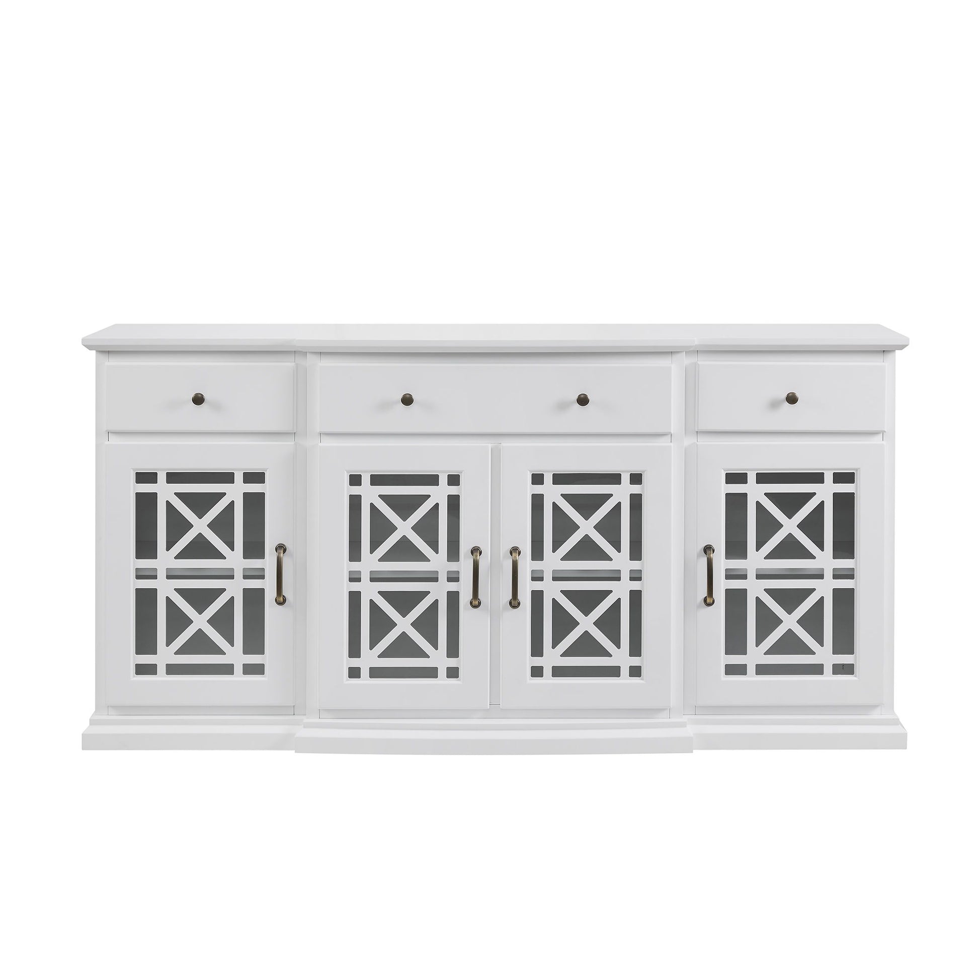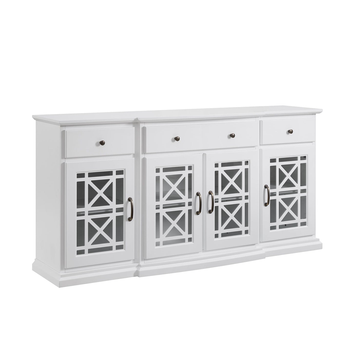 Classic Fretwork Detailed Glass Door Sideboard - White