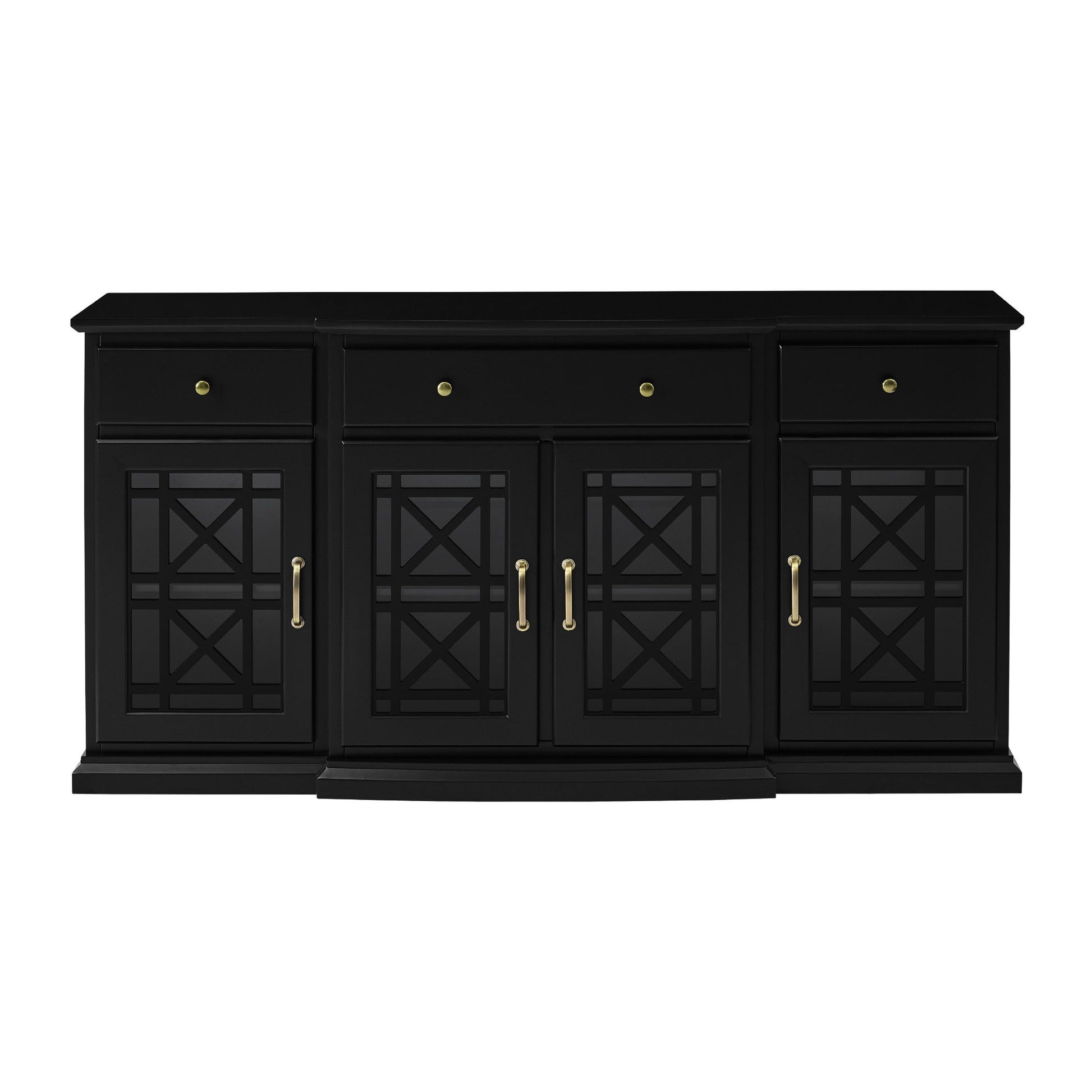 Classic Fretwork Detailed Glass Door Sideboard - Black