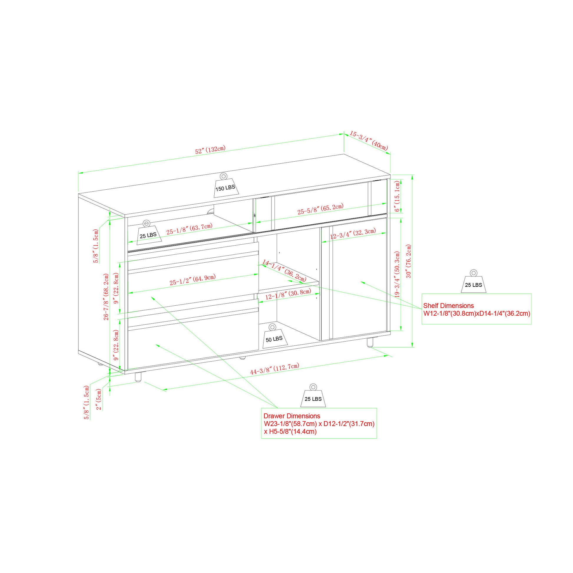 - Use as a sideboard, credenza, or TV stand