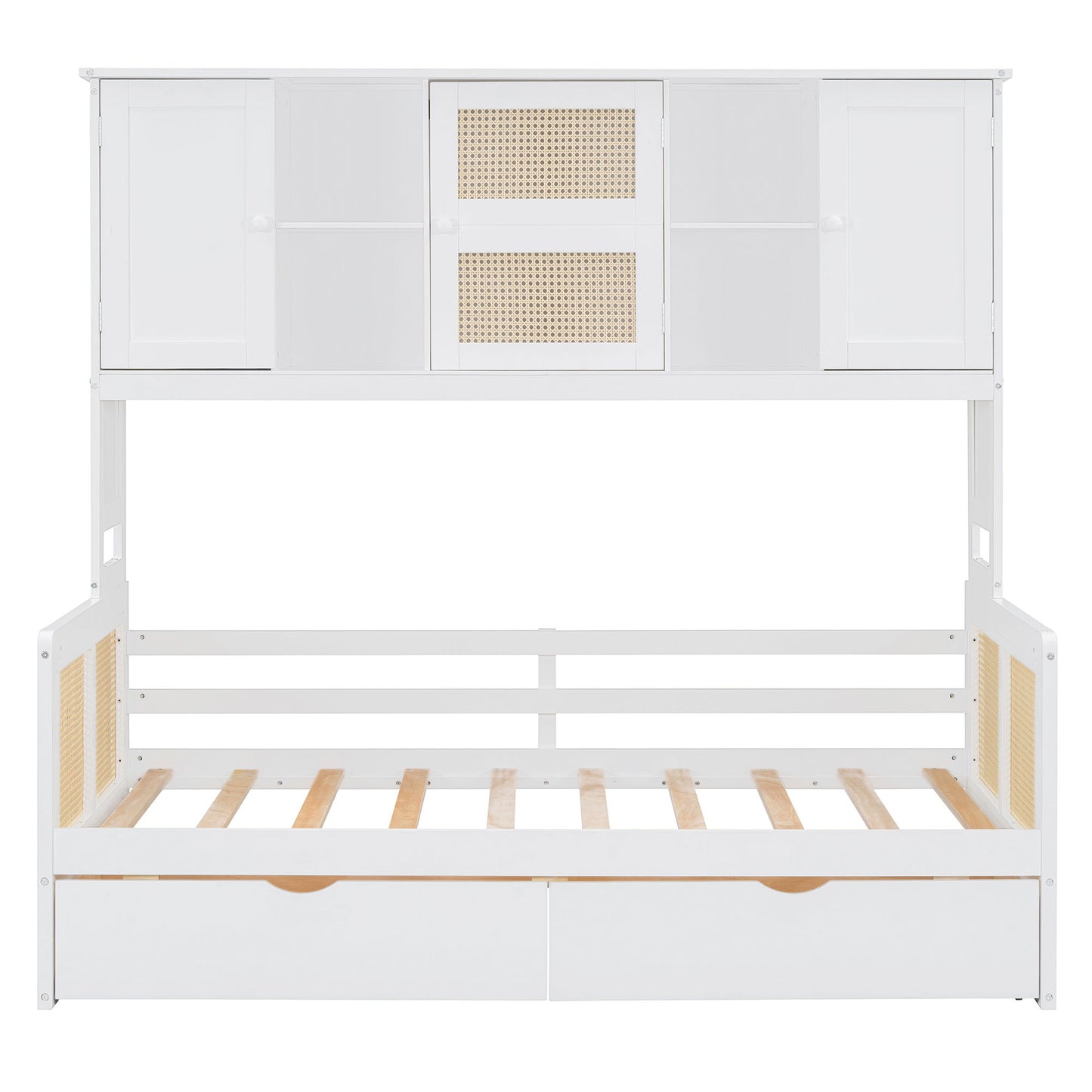 Modern Design: Our wooden storage daybed frame boasts a simple and elegant style that harmonizes seamlessly with a variety of home furniture. The rattan design, made of plastic material, adds a touch of sophistication.