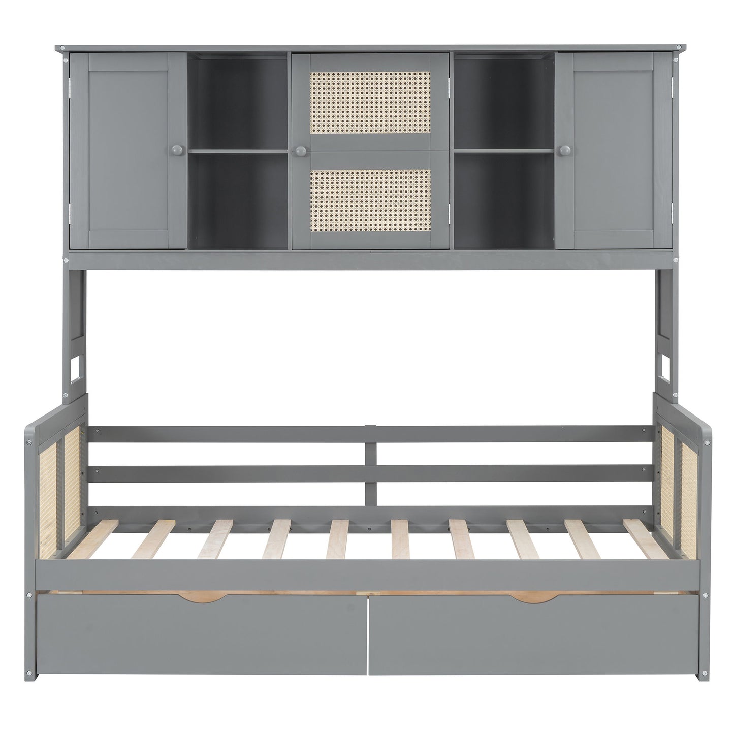 Twin Size Wooden Daybed With 2 Drawers, And All In One Cabinet And Shelf - Gray