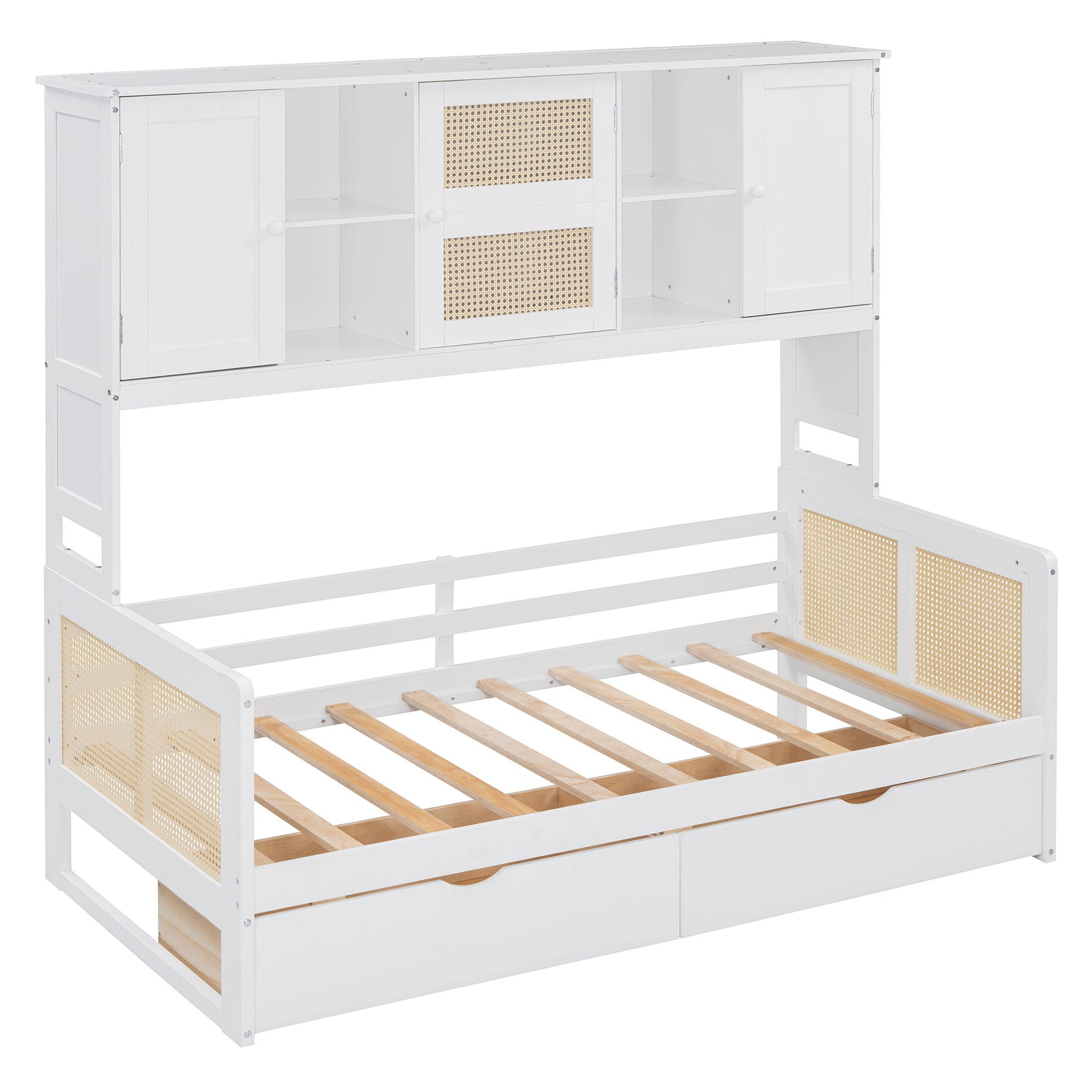 Twin Size Daybed With 2 Drawers, And All In One Cabinet And Shelf - White