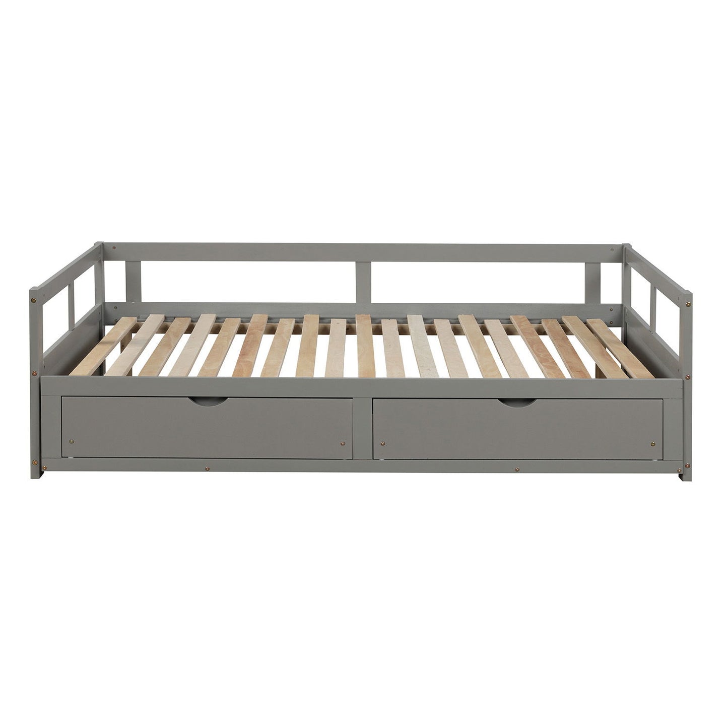 Daybed With Trundle And Two Storage Drawers, Sofa Bed For Bedroom Living Room - Gray