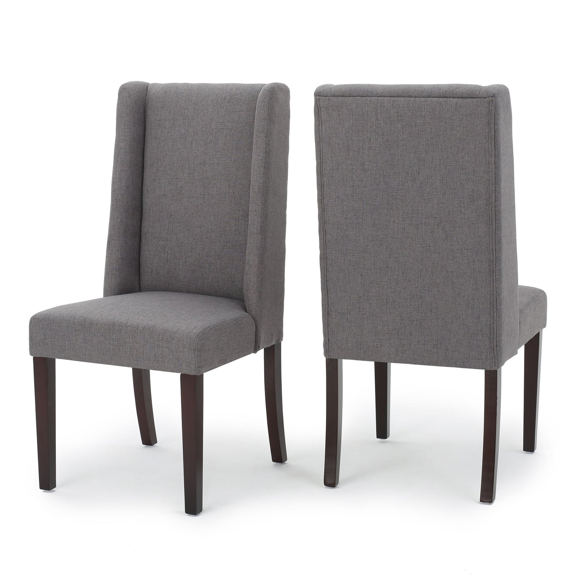 High Back Dining Chair (Set of 2) With Wingback Design And Birch Legs - Dark Gray