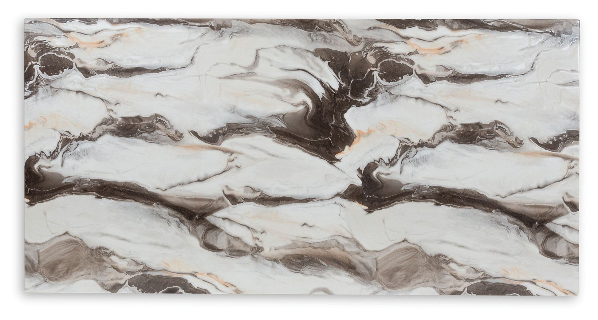 This dining table reflects your highly contemporary point of view. Its faux marble tabletop and base are a feast for the senses—white contrasts against the light and dark brown veining to create an elevated, authentic feel. With room to seat eight people in sleek style, this table is a delicious choice for an elegantly elevated dining area.