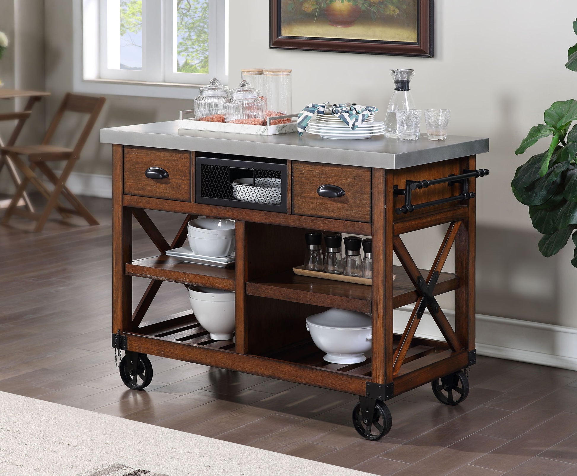 Kailey - Kitchen Cart - Antique Oak