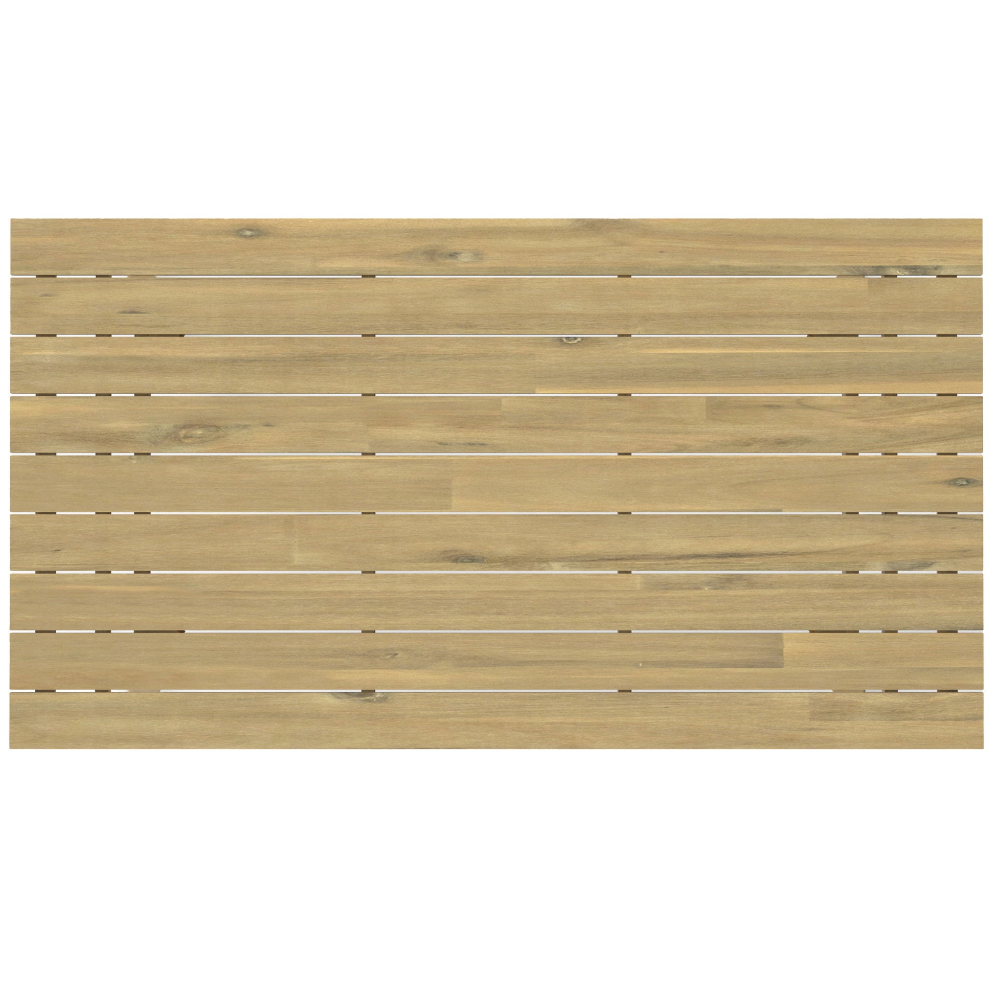 - Features spacious thick slatted solid acacia wood top and 4 solid acacia wood angular legs for strength and stability