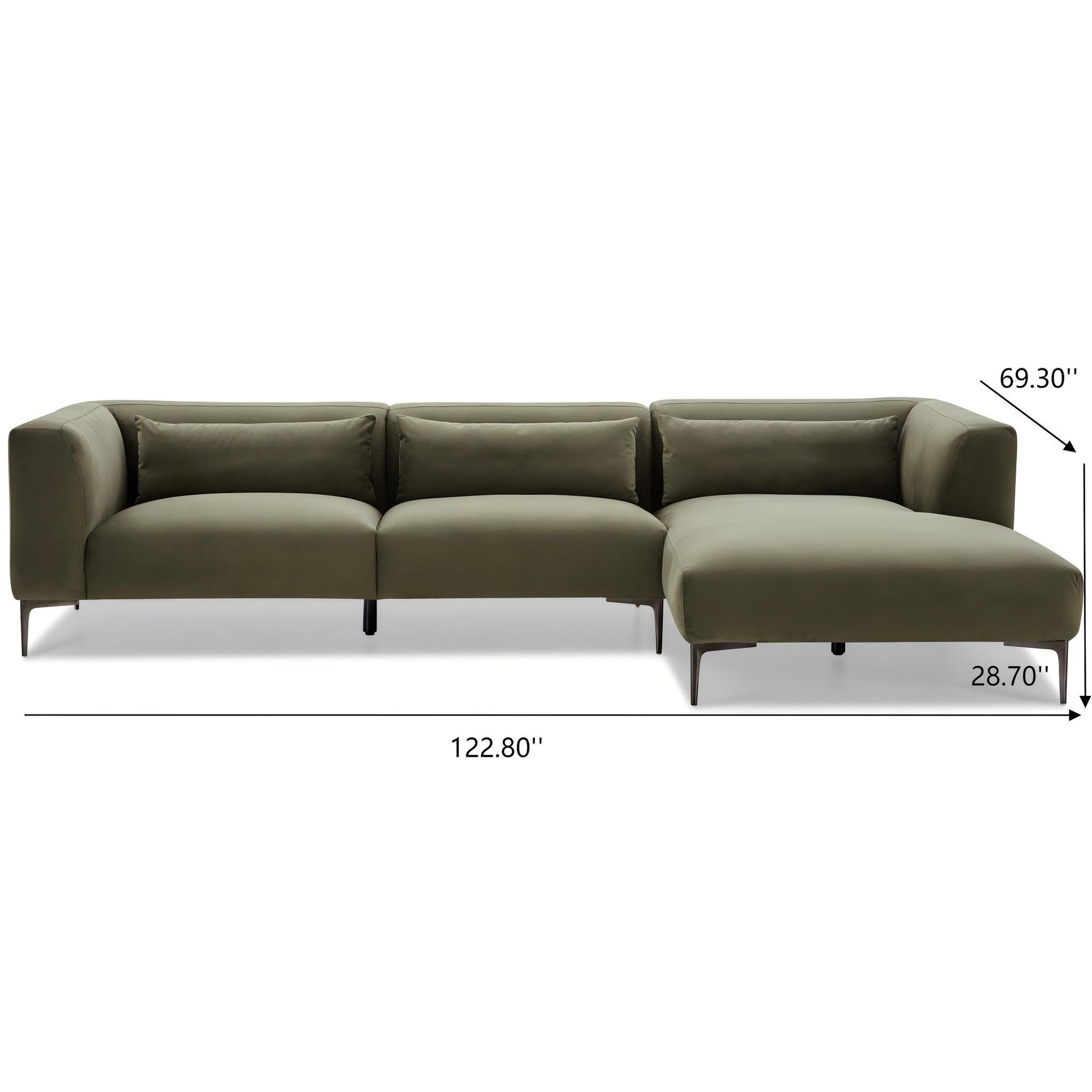- Luxurious Upholstery: Upholstered in performance velvet fabric, this sectional is visually stunning and practical, ideal for families and pet owners seeking both style and durability.