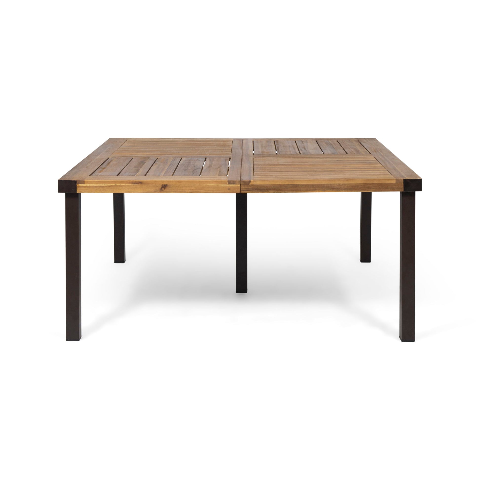 Lankershim - Modern Industrial Dining Table With Acacia Wood Slat Design - Teak