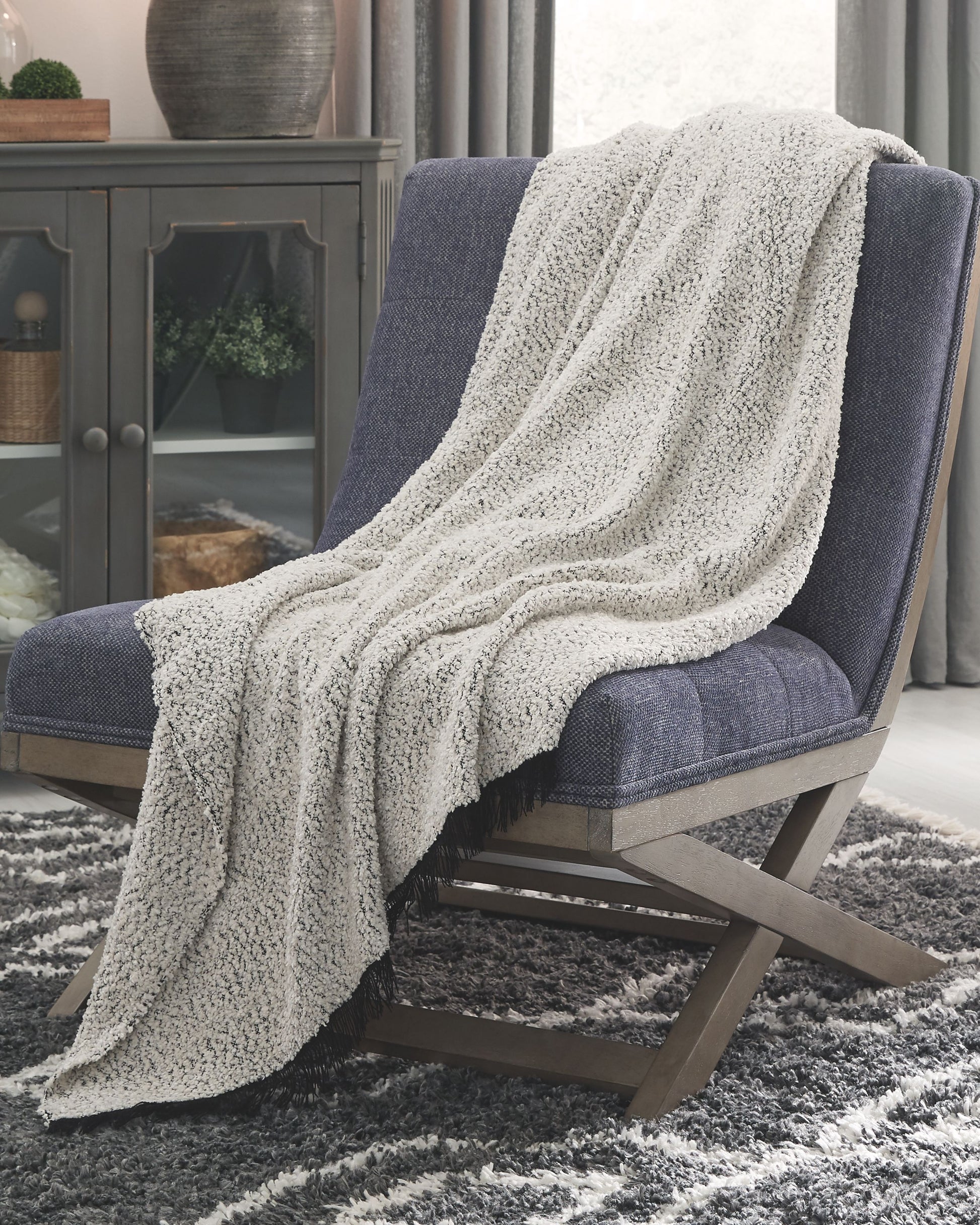 Cloudlike softness and cozy warmth make this throw nice to have around the house. Flirty black fringe and soft chenille merge a sumptuous soft feel with a richly artisan sense of style.