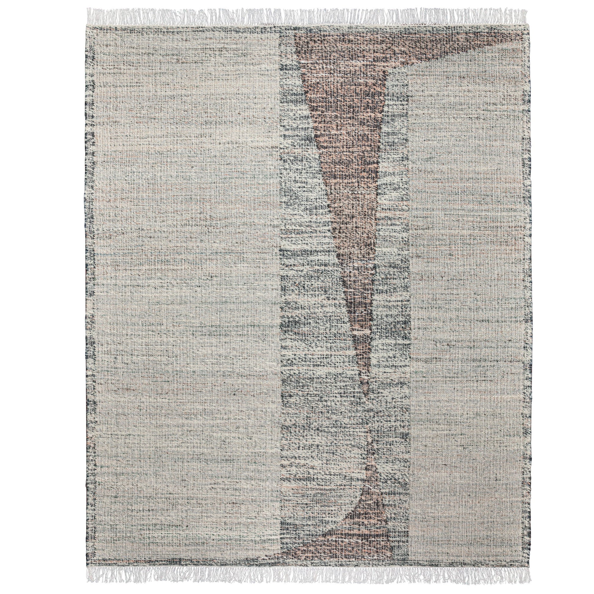 - Detailed with a geometric killim pattern in Natural and Silver featuring a hand-knotted fringe