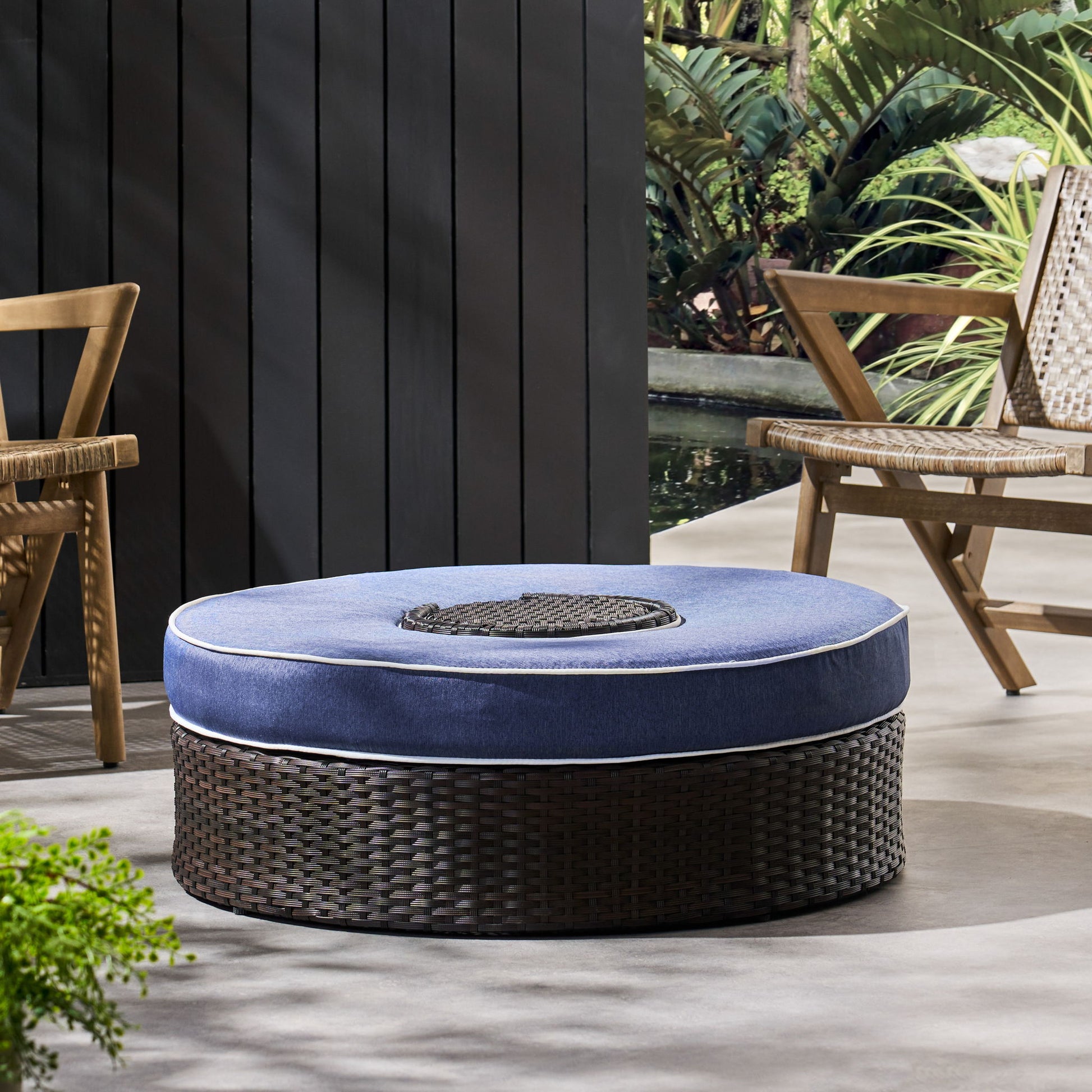 Modern Madras Ottoman With Ice Bucket Rattan, Iron, Waterproof Fabric - Brown