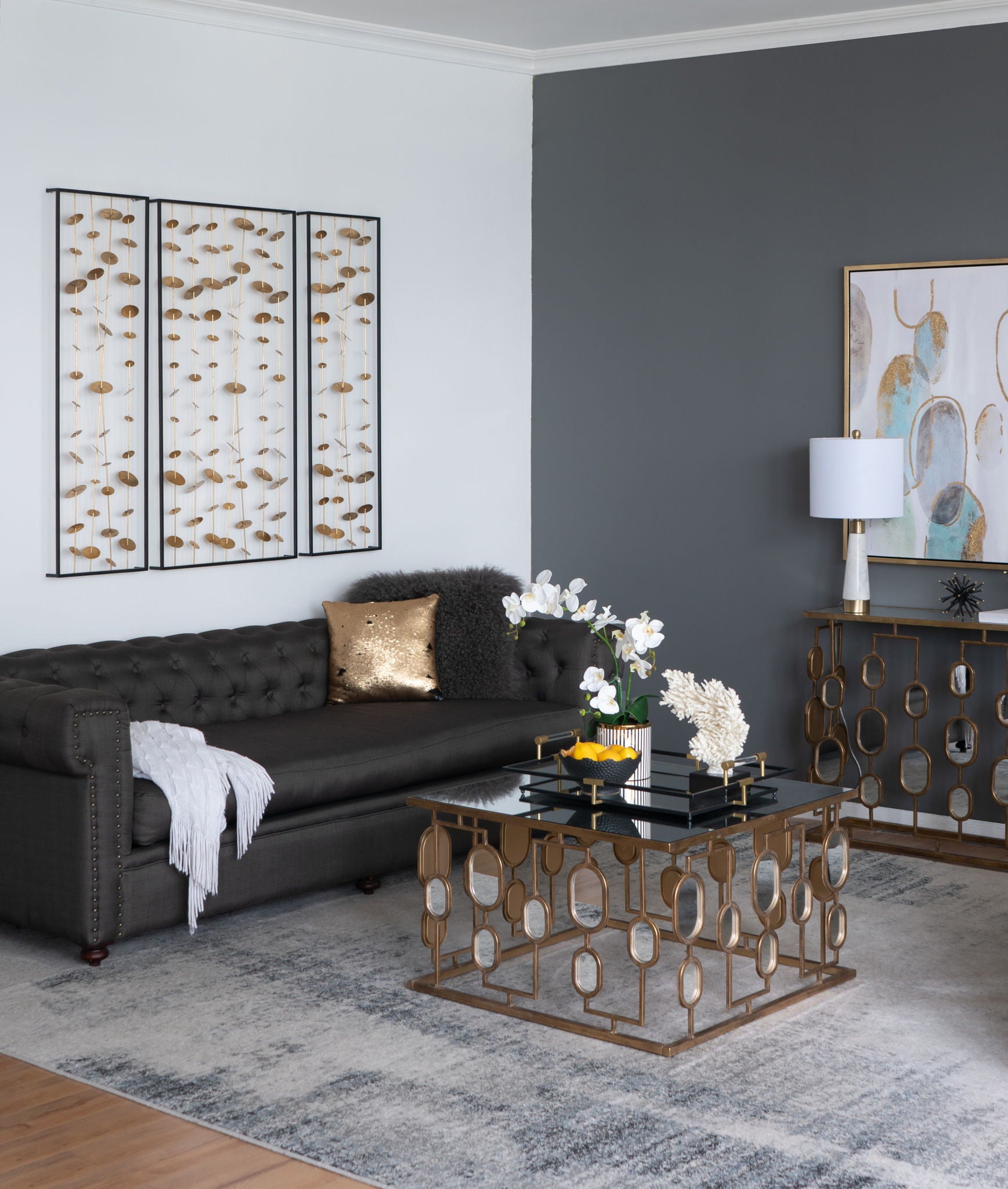 Metal Decorative Wall Art With Frame, Wall Decor For Living Room (Set of 3) - Gold