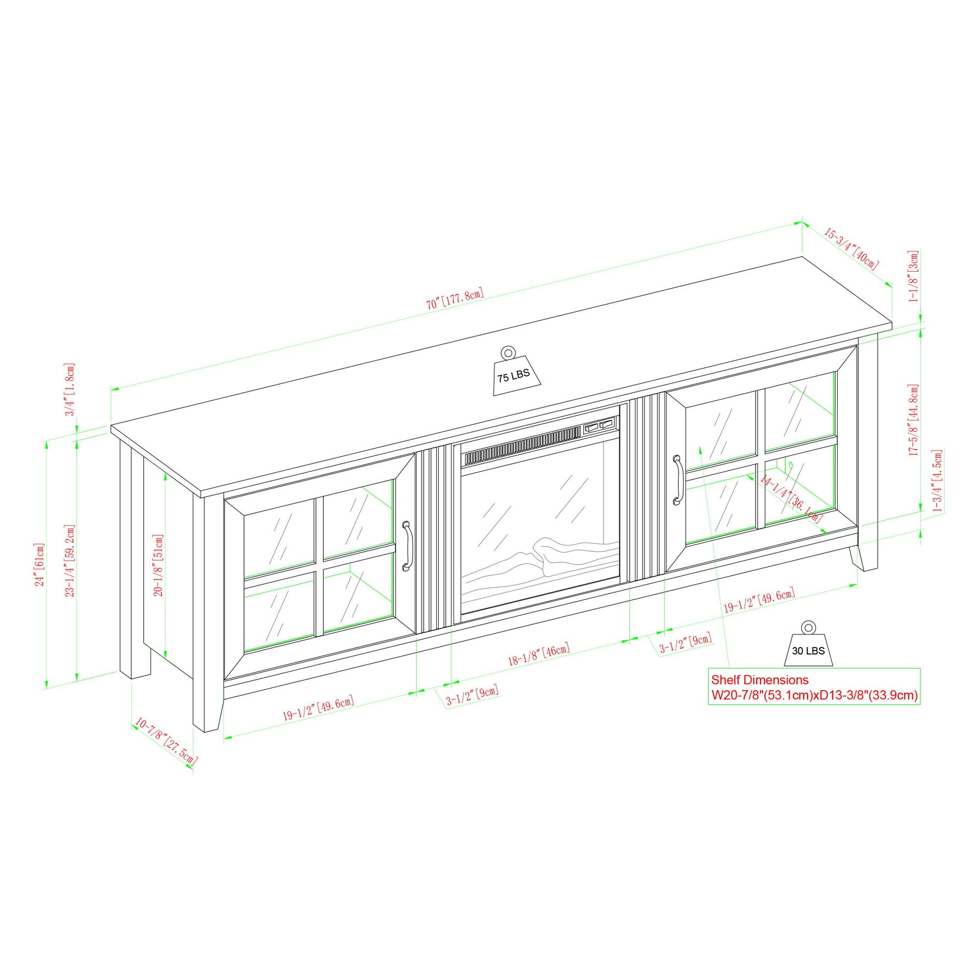 Modern Farmhouse 2 Door Glass Windowpane 70" Fireplace TV Stand For 80" TVs - Dark Walnut