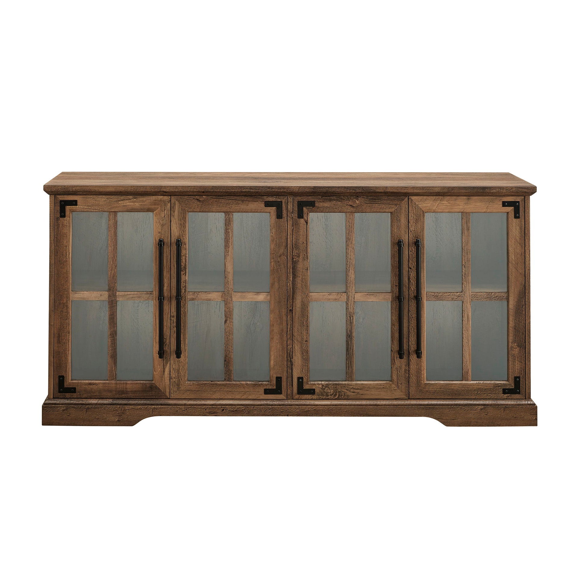 Modern Farmhouse Two Tone Windowpane Glass Door TV Stand For TVs Up To 65"