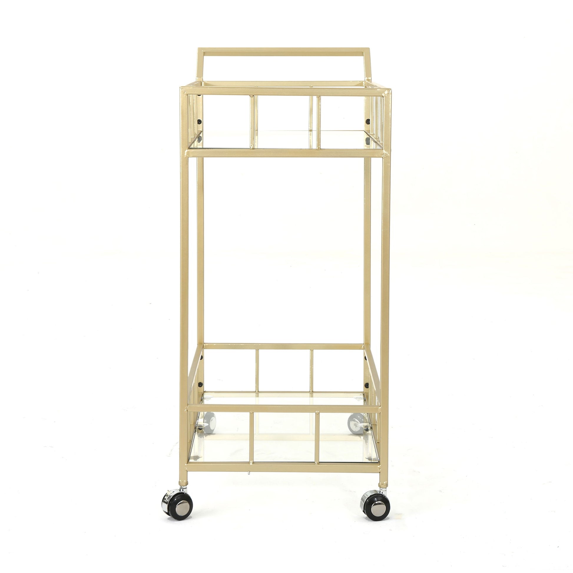 Modern Metal And Glass Bar Cart With Rolling Casters - Gold