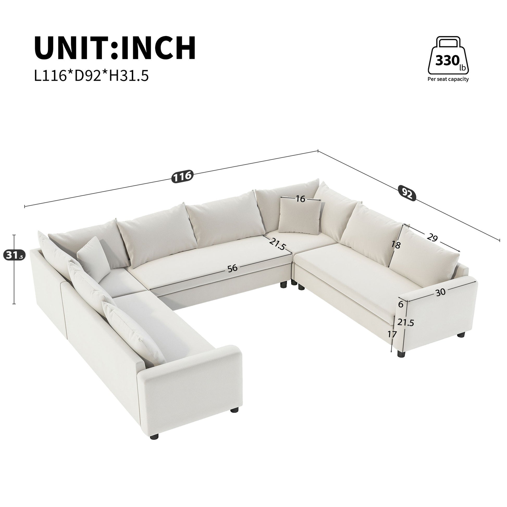 Modular Sectional Reversible U Shaped Couch Set, Free Combination Minimalist Style, Oversized 8 Seat Convertible Sofa - Cream