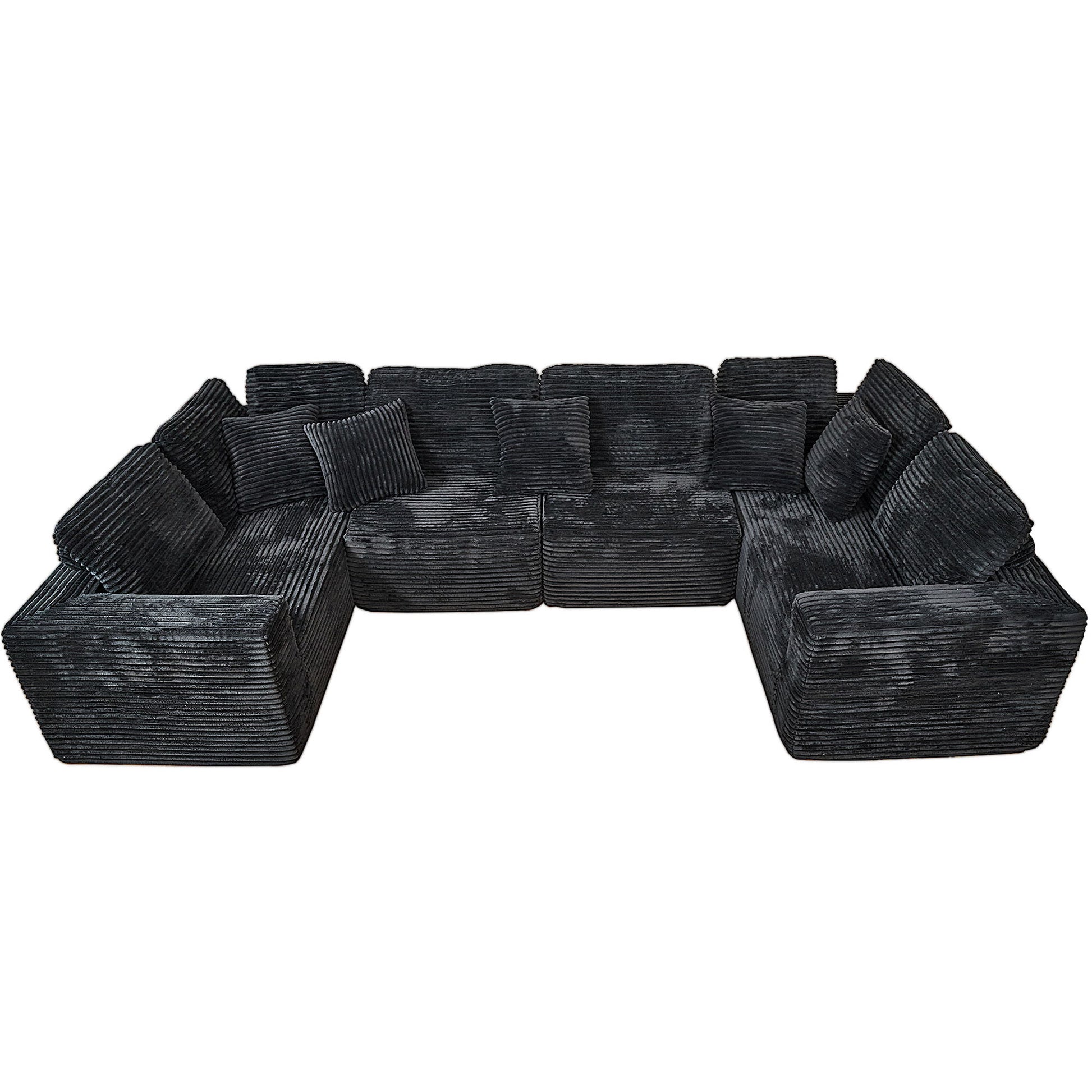 Modular U Shaped Sectional Sofa, 6 Seater Chaise Lounge With Reversible Design, Customizable Living Room - Black