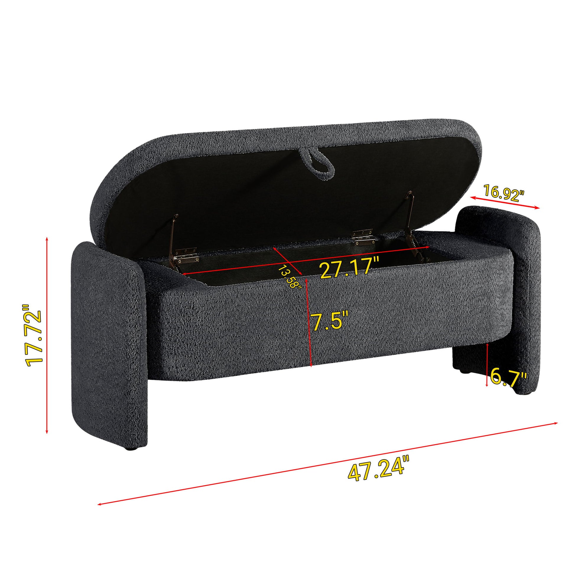 Ottoman Oval Storage Bench, 3D Lamb Fleece Bench With Large Storage Space For The Living Room, Entryway And Bedroom - Dark Gray