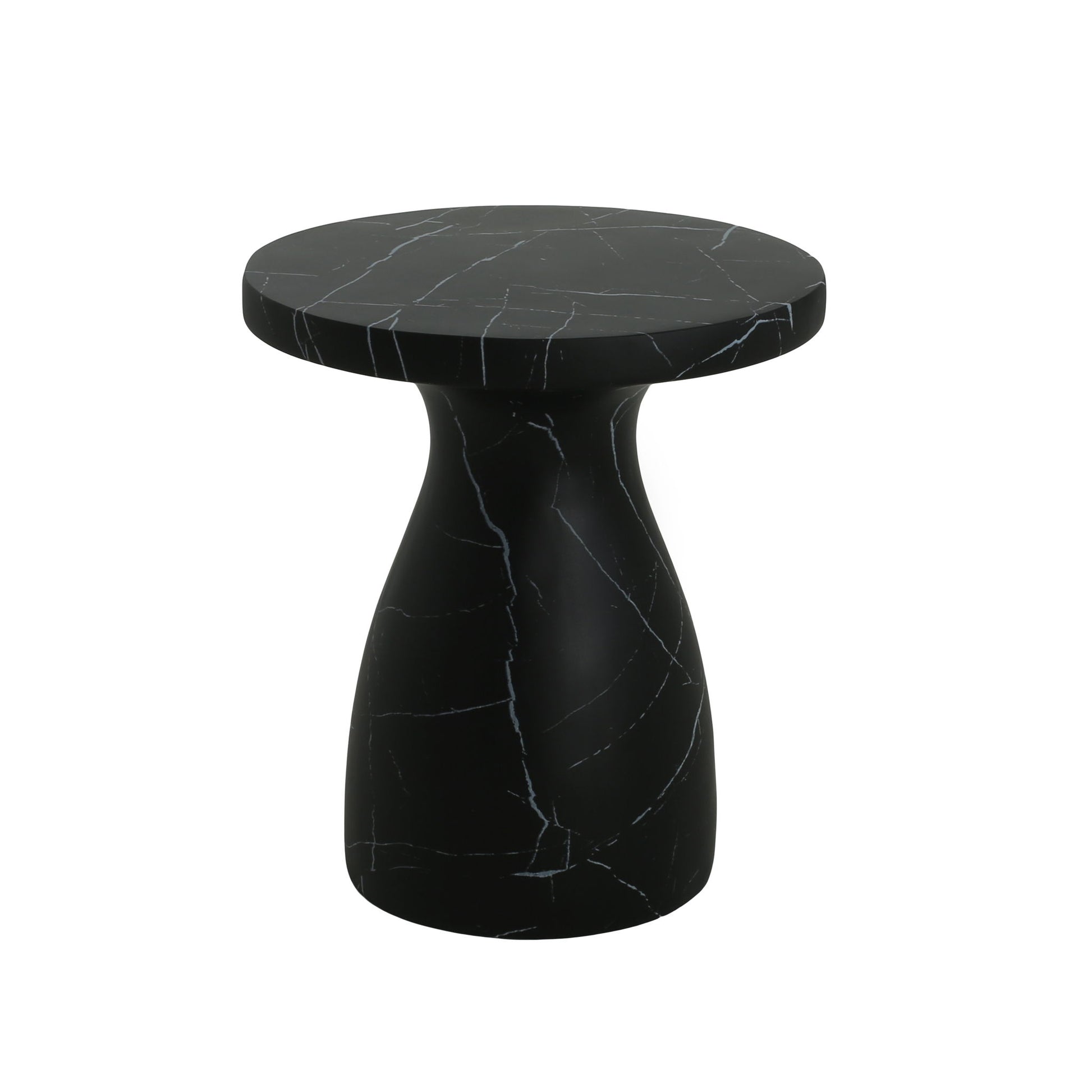 Outdoor Travertine Side Table, Light Weight Concrete End Table - Black Marble Effect