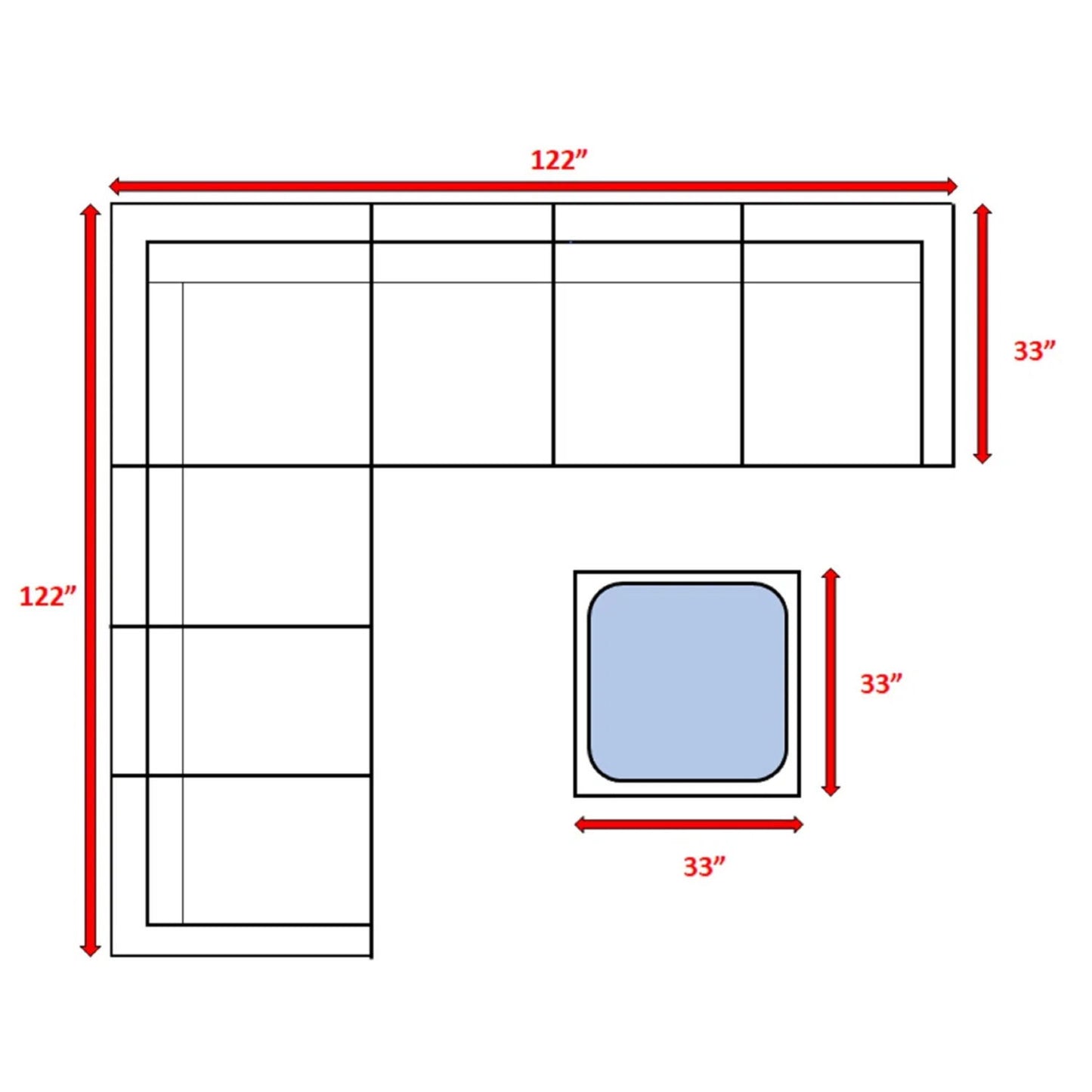 - Plush Cushions: Foam-filled, 5" thick seat cushions and 7" thick back cushions for deep comfort