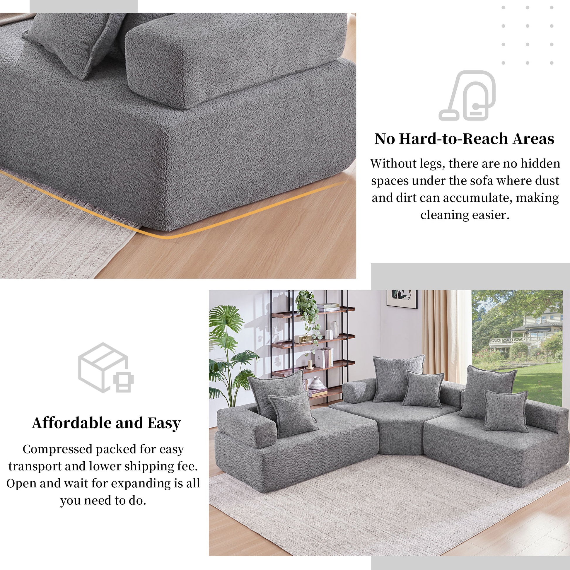 Oversized Modular L Shaped Sectional Sofa, Luxury Boucle Floor Couch Set, Convertible Sleeper Couch, Spacious Foam-Filled Sofa Bed, 3 Piece Free Combination - Gray