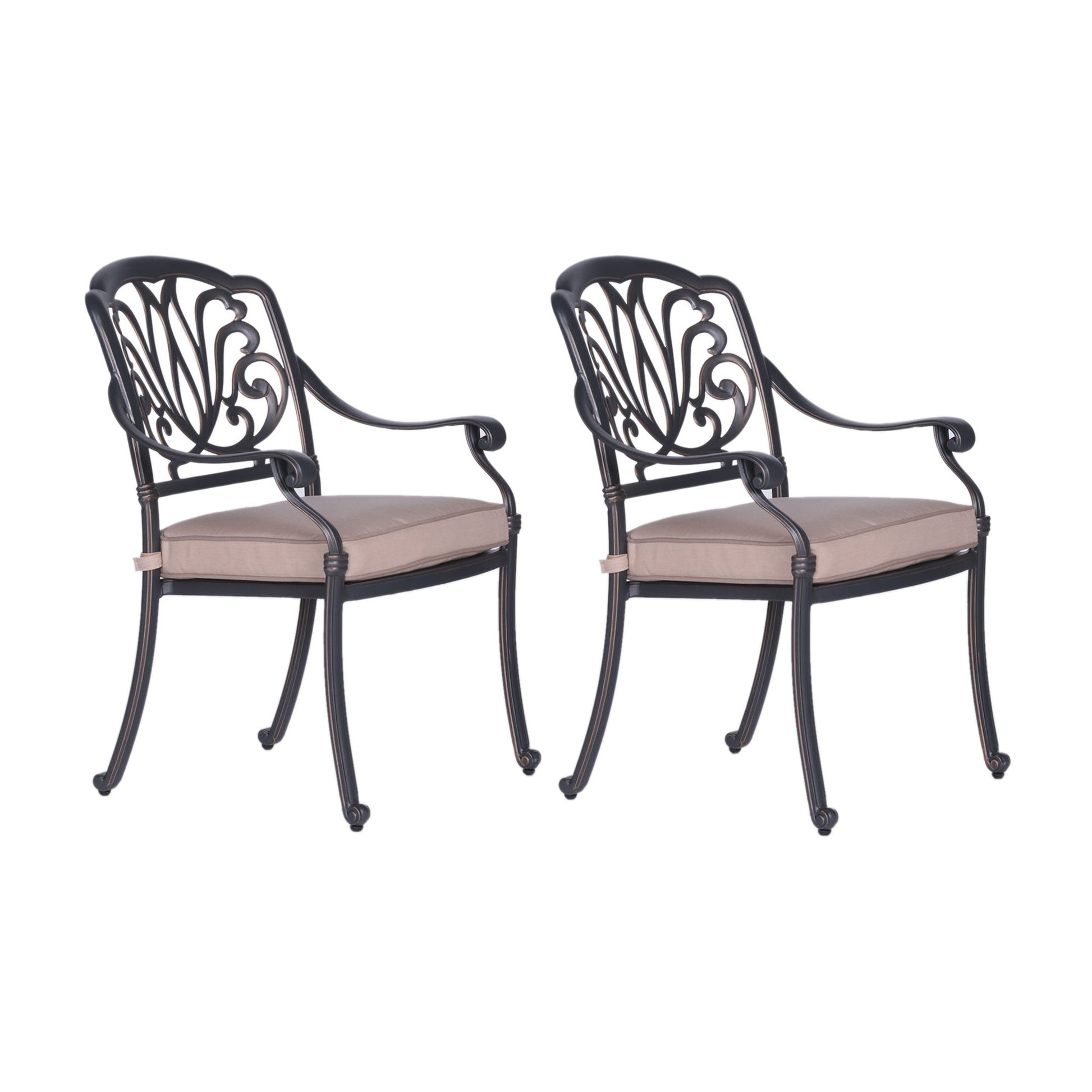 Patio Outdoor Aluminum Dining Armchair With Cushion (Set of 2)