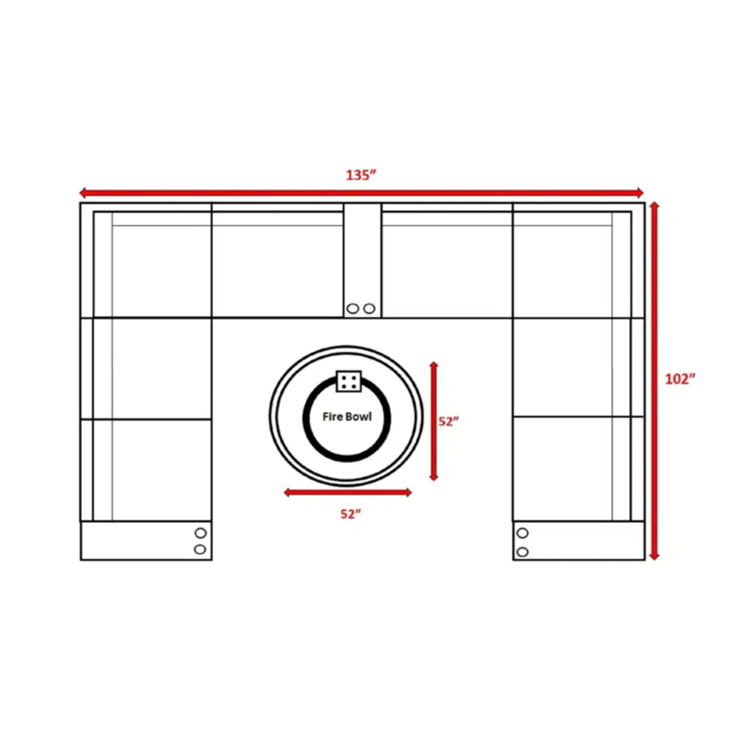 - Complete Outdoor Set: 12-piece group includes 2 modular sectionals, 1 sofa, fire pit, and 18 thick cushions.