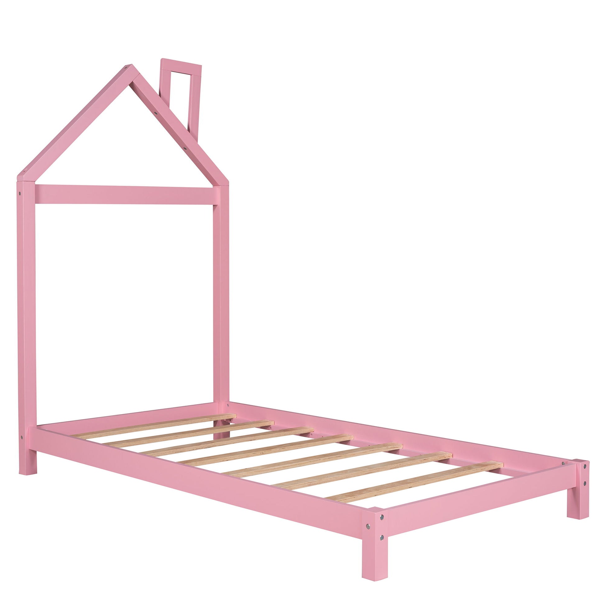 Twin Size Platform Bed With House Shaped Headboard - Pink