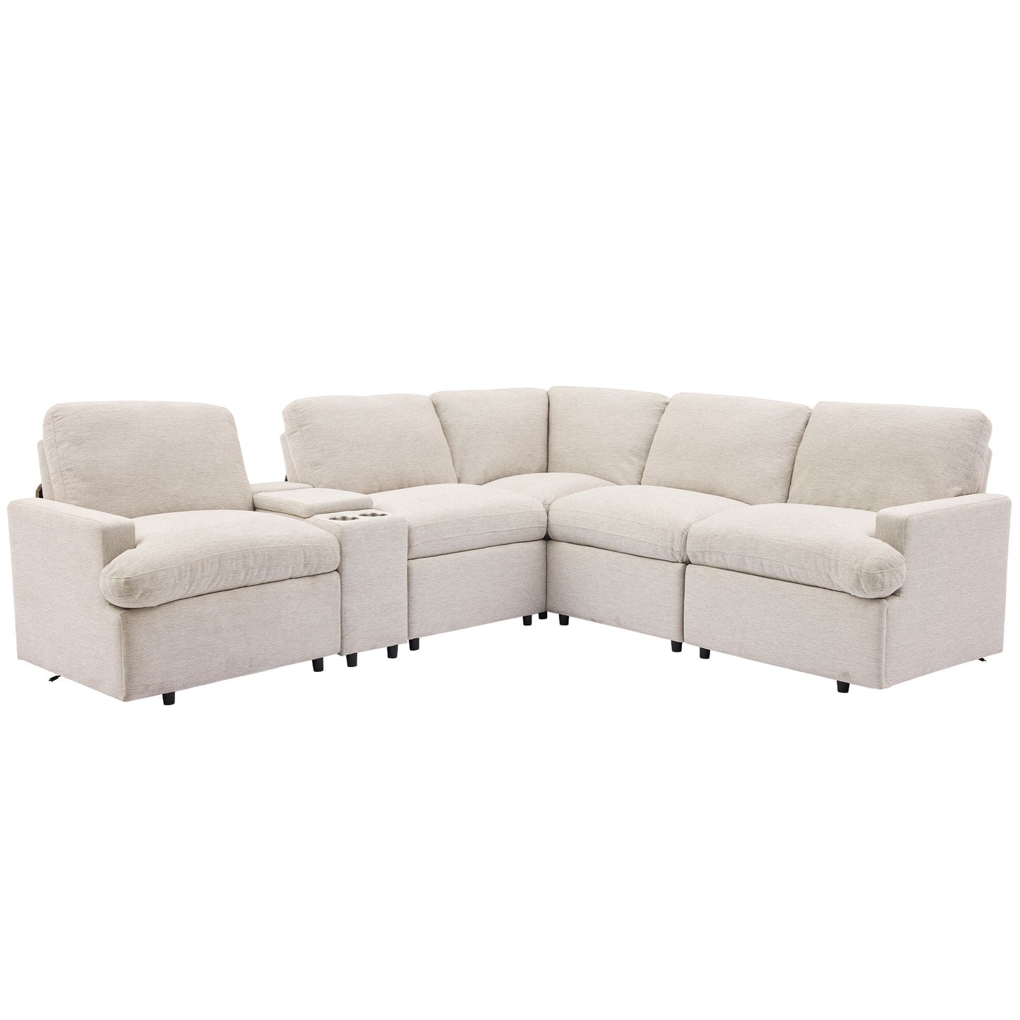 Power Recliner Corner Sofa Home Theater Reclining Sofa Sectional Couches With Storage Box, Cup Holders, USB Ports And Power Socket For Living Room - Beige