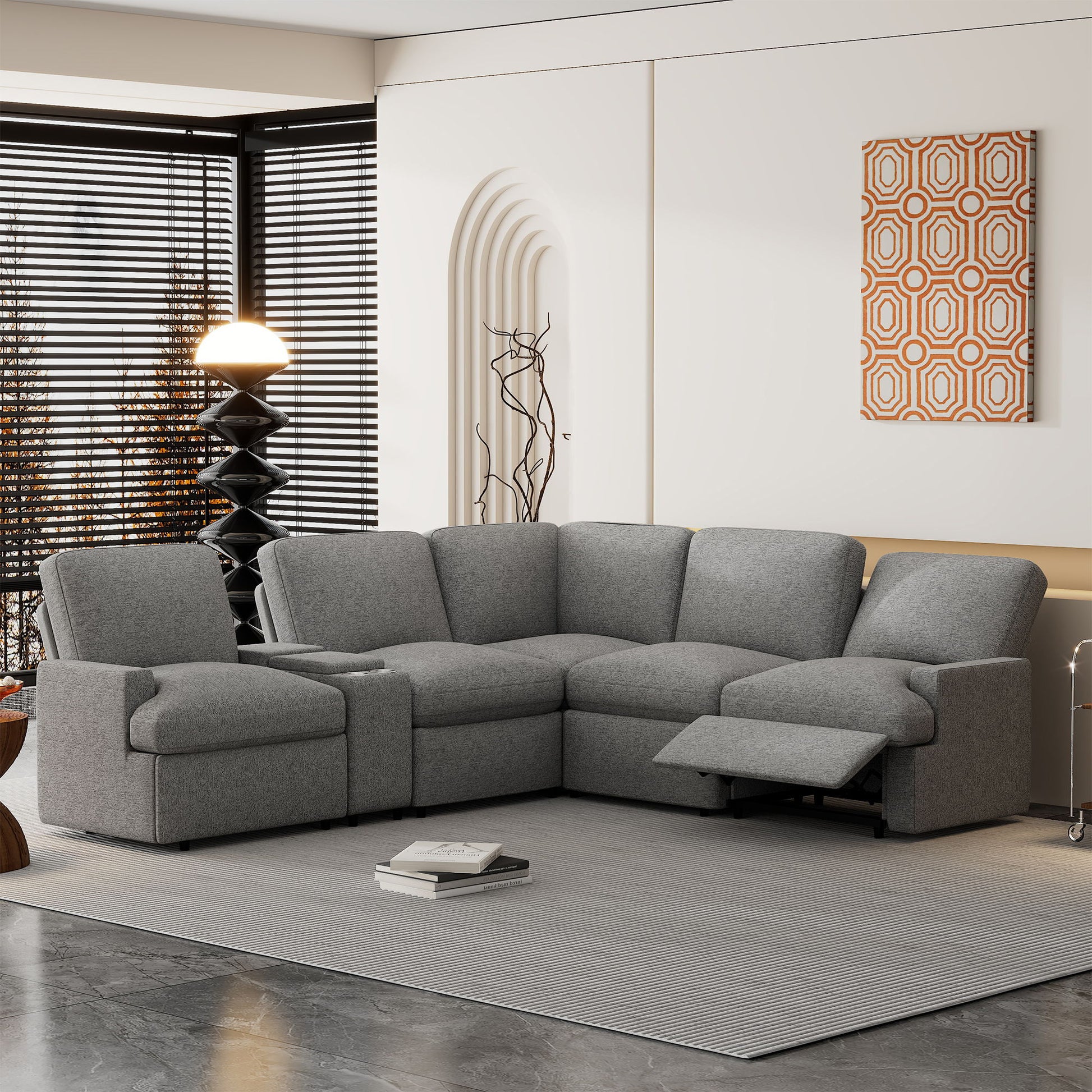 Power Recliner Corner Sofa Home Theater Reclining Sofa Sectional Couches With Storage Box, Cup Holders, USB Ports And Power Socket For Living Room - Gray