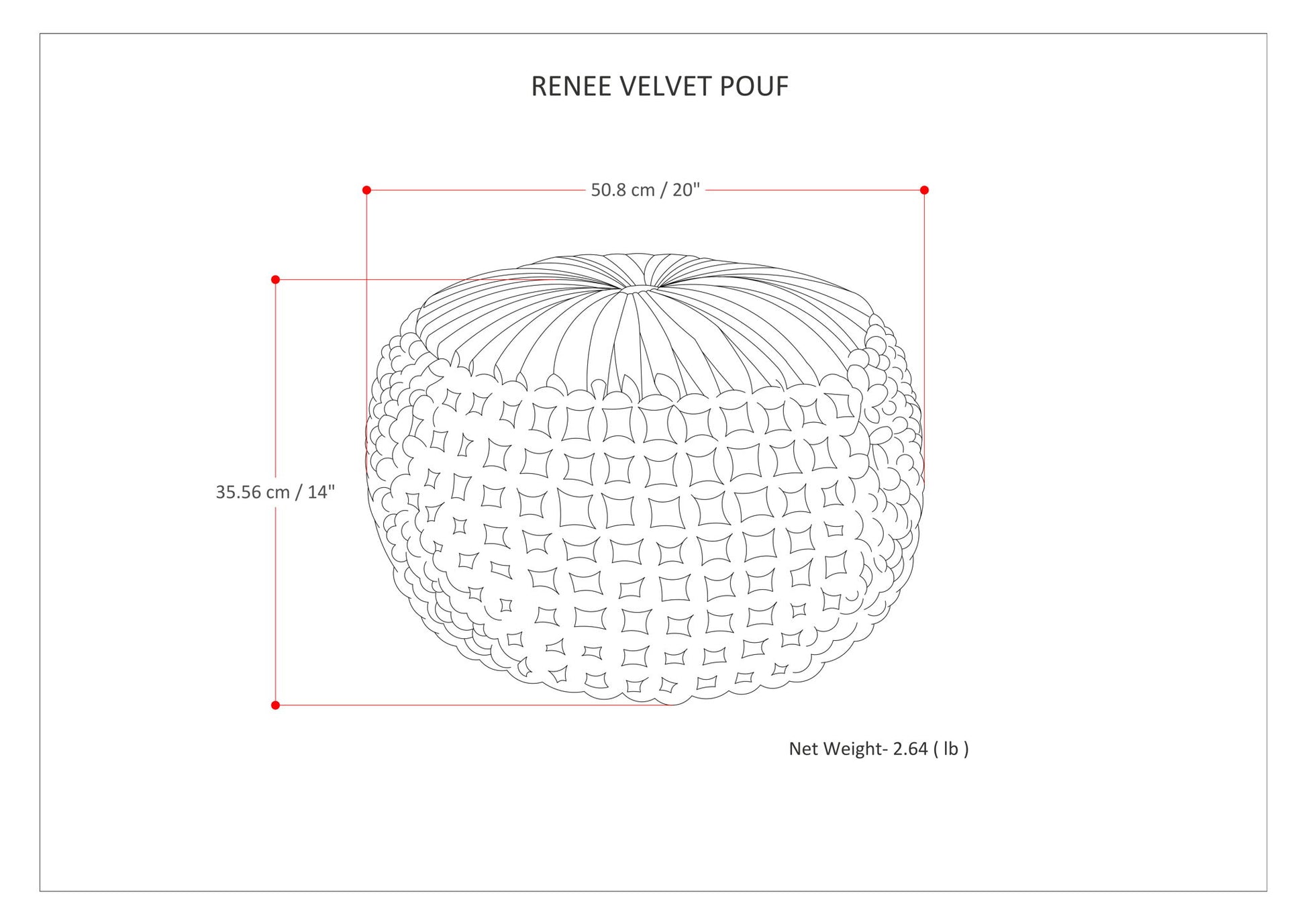 - Versatile round shape featuring a button tufted pleated top and unique tufted detail sides