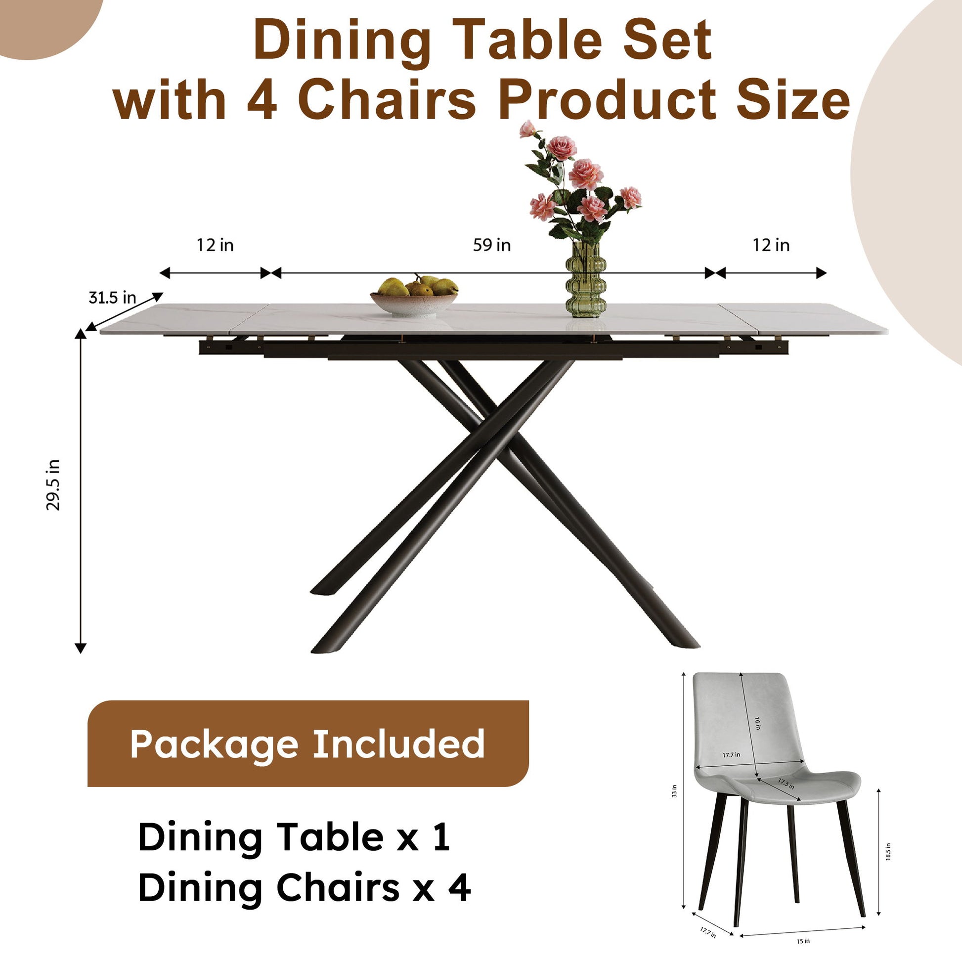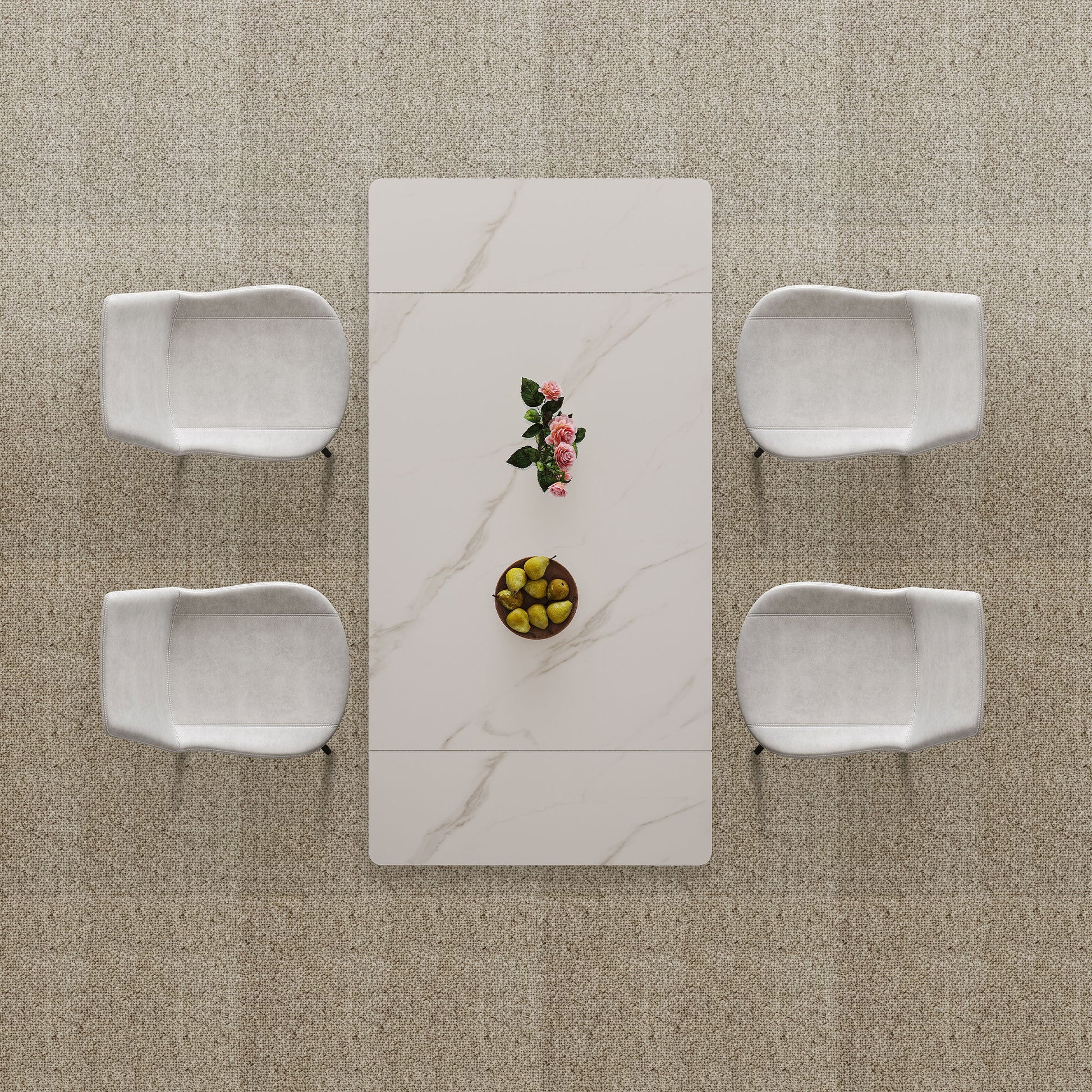 Retractable Dining Table Set With Carbon Steel Legs, Rectangular, Table And 4 Chairs - White
