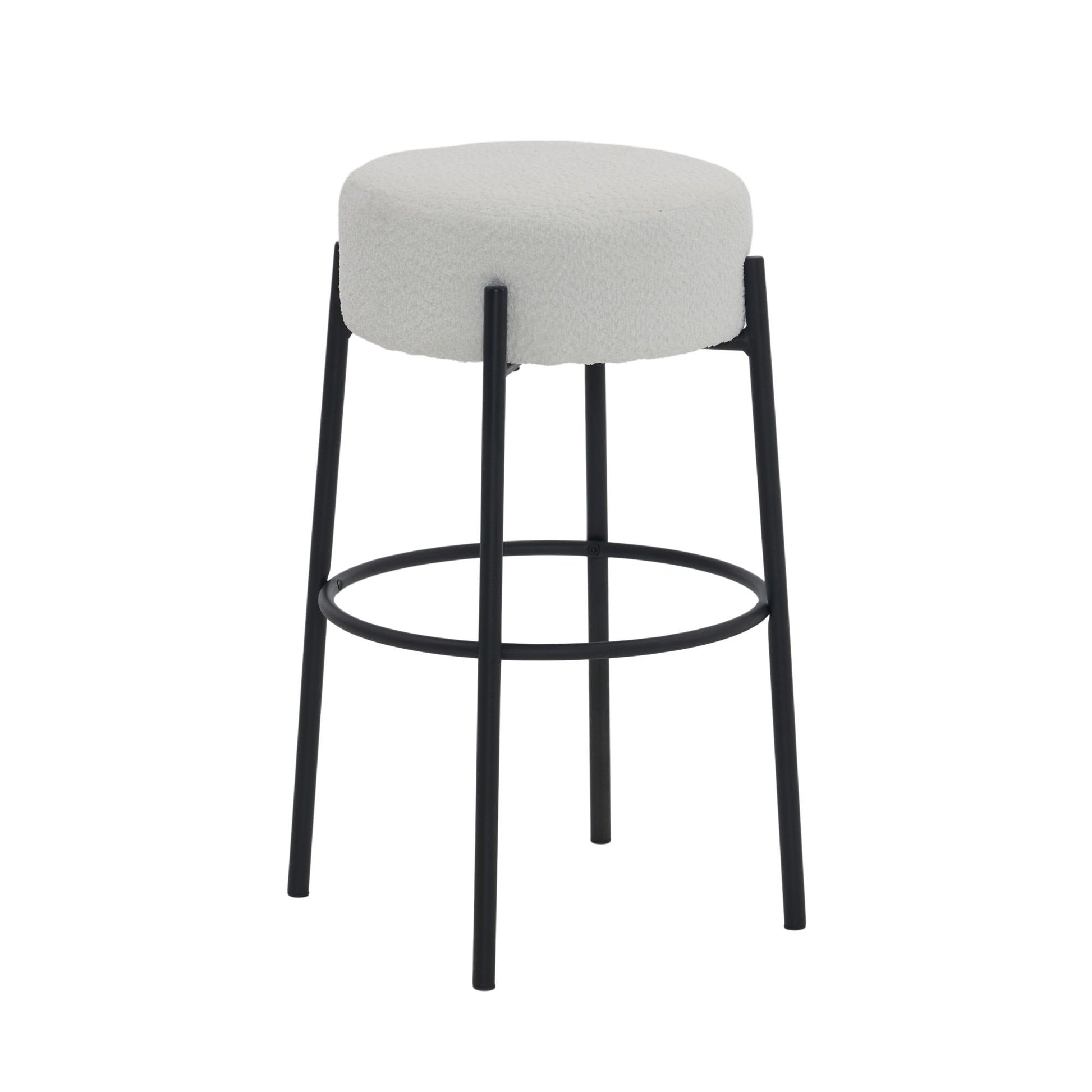 Round High Bar Stools (Set of 2), Contemporary Upholstered Dining Stools For Kitchens, Coffee Shops And Bar Stores - White